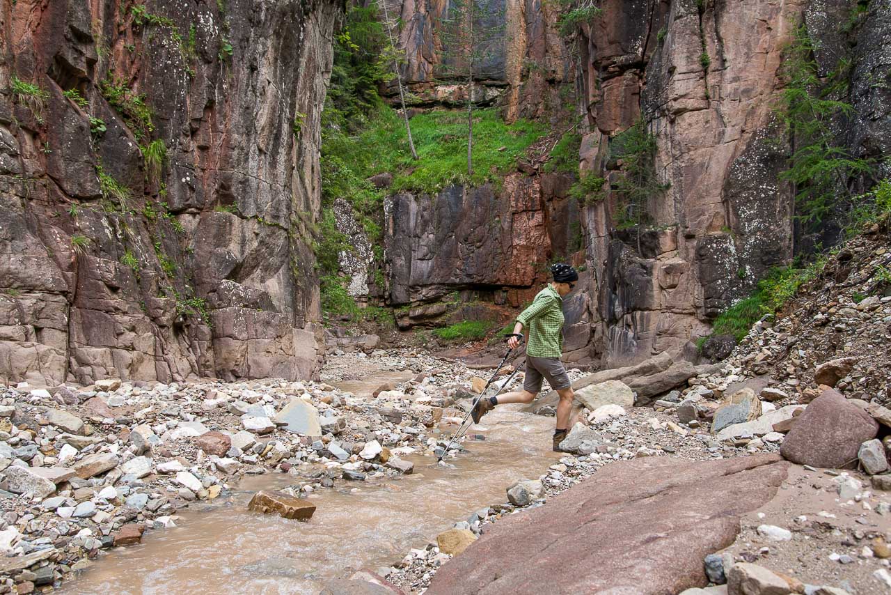 Wer im Bletterbach unterwegs ist, muss immer wieder seine Sprungkraft unter Beweis stellen.