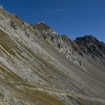 Nachdem wir das felsige Kriegsmuseum hinter uns gelassen haben, steigen wir nun bis zur Forcella de Ciadin auf 2.664 m ab und erreichen somit das Ende der Schwierigkeiten. Östlich ist ein Weg zur Cima dell’Uomo (3.010 m) als „Sentiero alpinistico” ausgeschildert. Dieser existiert jedoch scheinbar nicht mehr, da seine Sicherungen wegen Steinschlaggefahr abgebaut wurden.
