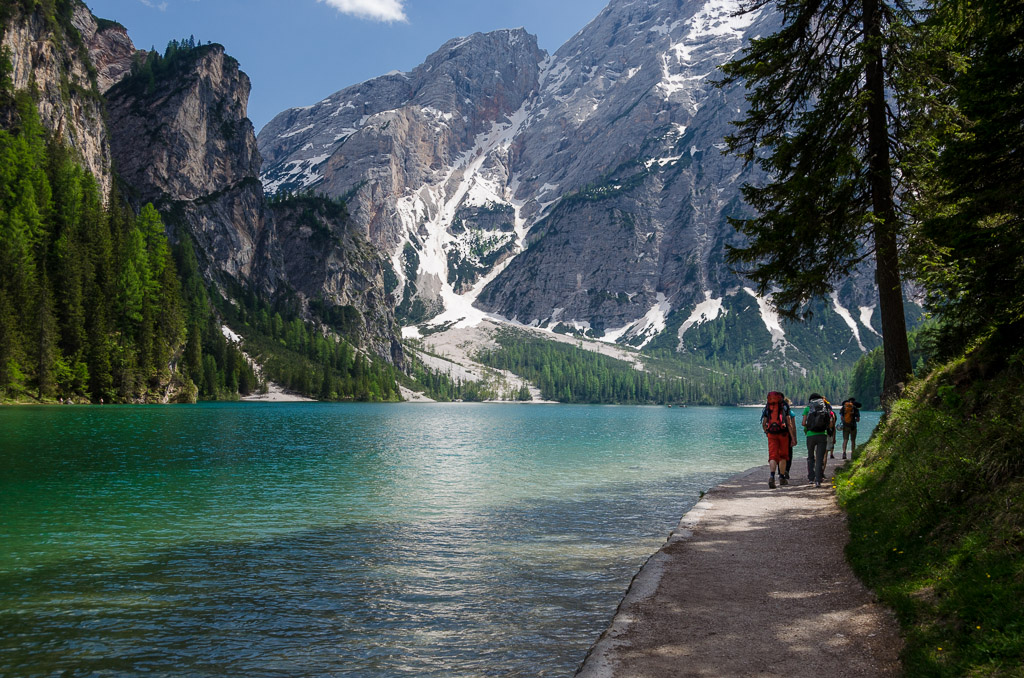 Der Seerundweg ist bei Spaziergänger seht beliebt. Ob Mountainbiker auch die Runde fahren dürfen bin ich mir nicht so sicher.Am Pragser Wildsee