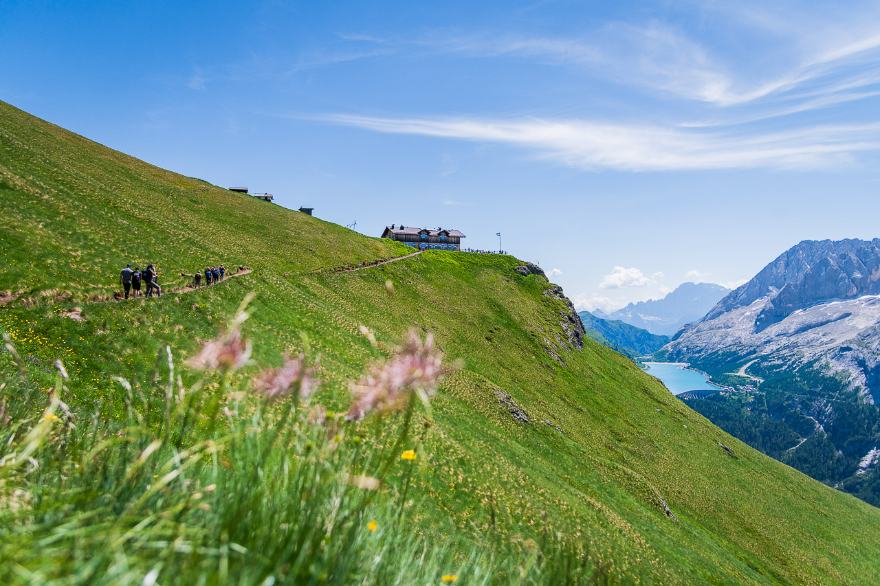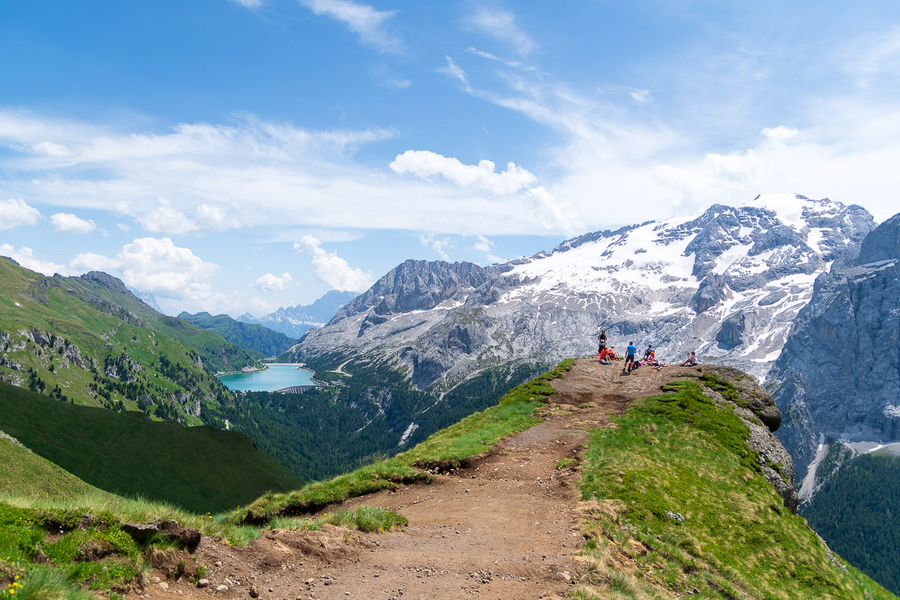Auf jeden Fall dürfte derBindelweg zu den schönsten Dolomiten-Höhenwegen gehören und er ist darüber hinaus noch relativ leicht zu gehen, auch wenn der Abstieg zum Fedaia-See sehr steil ist und man gut auf den Weg achten muss.