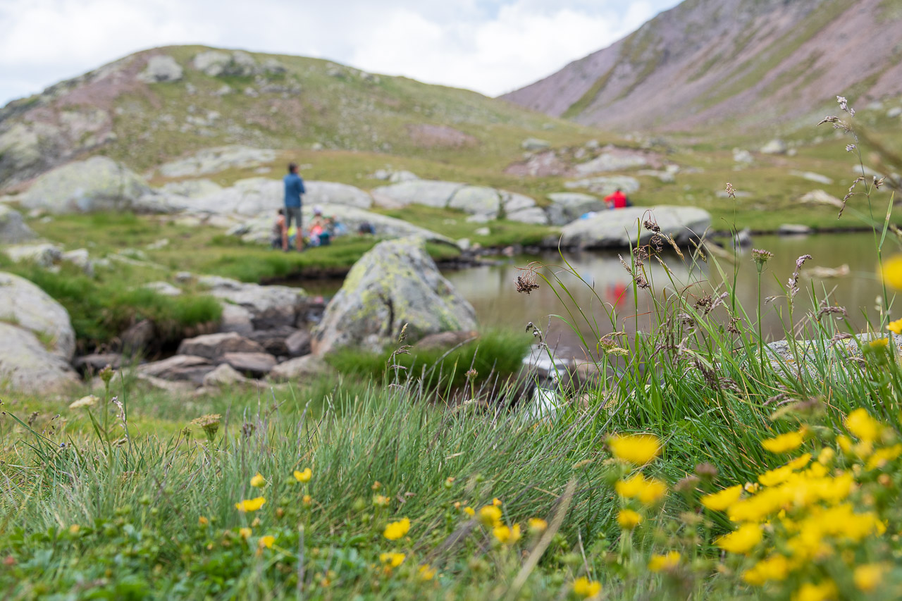 Der schöne runde Laugensee (2182 m) liegt in einer Mulde zwischen den zwei Gipfeln Großer Laugen (2434 m) im Westen und Kleinen Laugen (2297 m) im Nordosten. Den Kleinen Laugen könnten wir auch mit Kinder bezwingen, aber wir wollen die Kleinen nicht überstrapazieren. Wer so brav den Berg hochgewandert ist, der hat sich jetzt eine deftige Rucksackjause am See verdient!