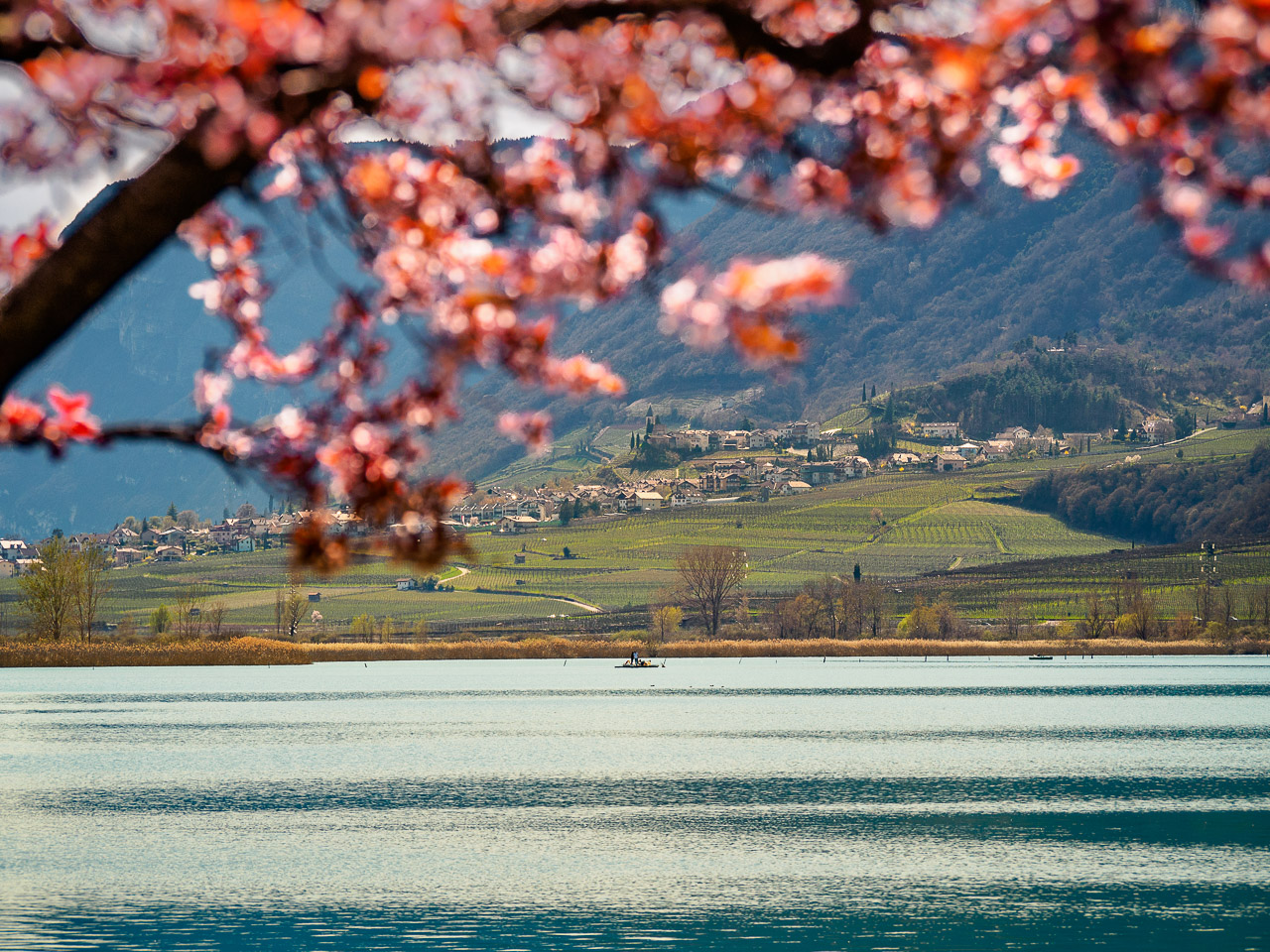 Frühlingsblick über den Kalterer See nach Tramin