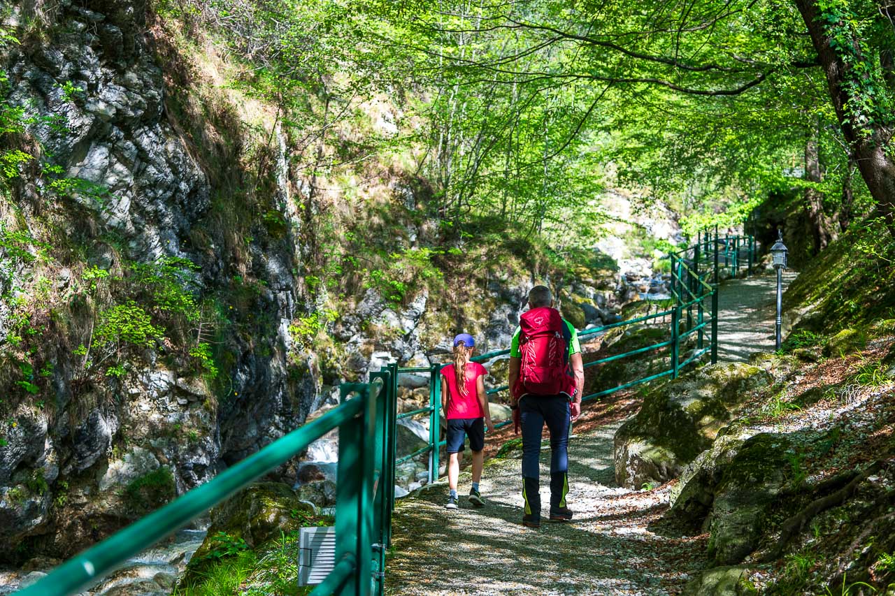 Vom Parkhaus schlendern wir zur ersten Bar, verdrücken ein Briosch und marschieren dann die Hauptstraße entlang zum Rathauspark (Parco Villa Boghi). Wir schreiten mitten durch den grünen Park, durch das anschließende Fischereimuseum und schon stehen wir am Ufer des Rio San Giovanni, dessen Schwemmkegel etwas südlich des historischen Stadtkerns in den Gardasee mündet. Nun folgen wir dem Promenadenweg Percorso Natura (Wanderweg 101 bzw. BVG, Sentiero Antonioli) rechts des Baches hinauf ins Valle del Singol. Der betonierte und nachts beleuchtete Fußweg ist zwar als Spazierweg angelegt, aber doch recht steil. Er führt uns entlang des angenehm rauschenden und kristallklaren Baches Torrente San Giovanni hinauf in die steile Ostflanke des Monte Preals.