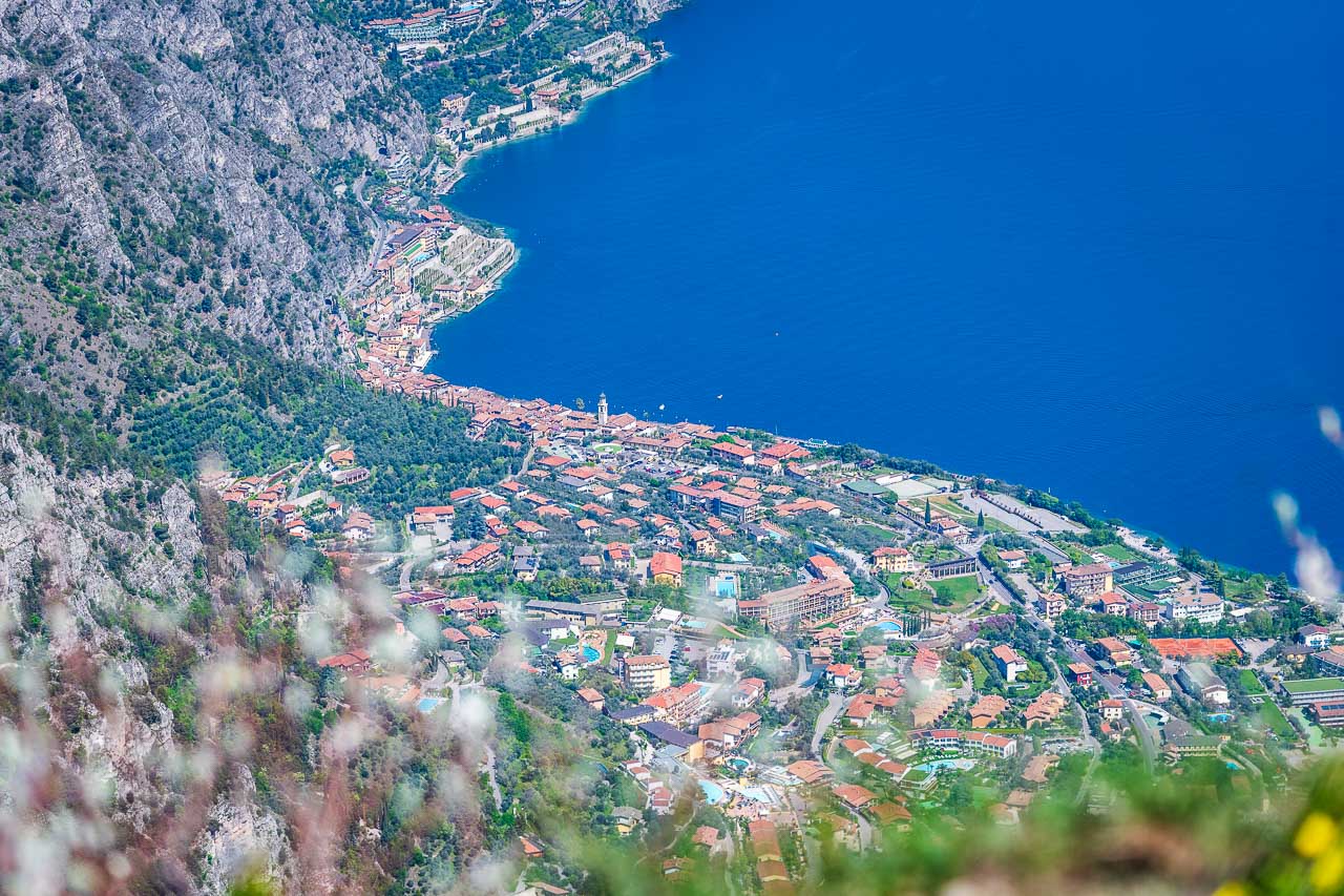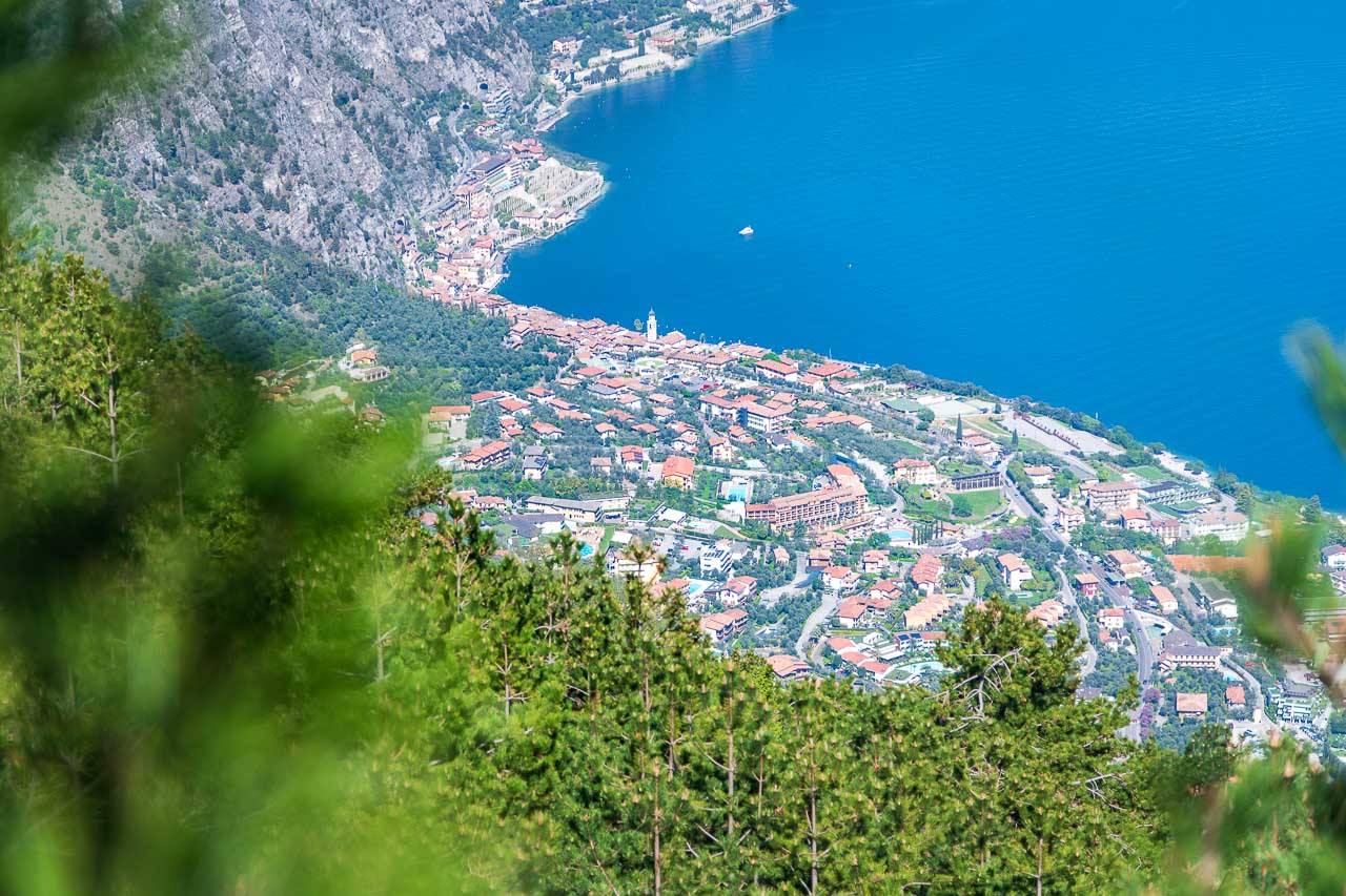 Blick vom Monte Bestone auf Limone und den Gardasee
