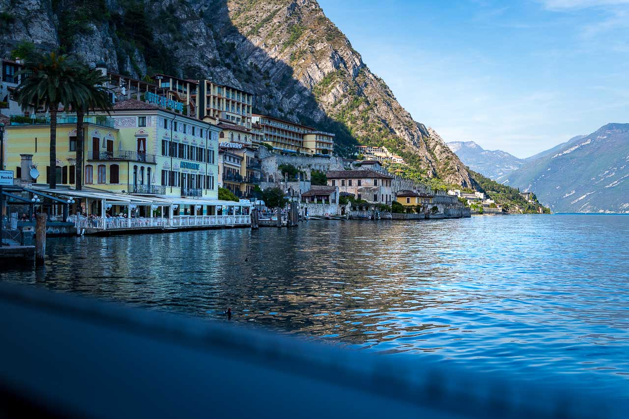 Die kleine, nur circa 1.000 Einwohner zählende, Gemeinde Limone am Gardasee ähnelt mehr einer Stadt als einem Dorf. Das ist vor allem dem Platzmangel geschuldet. Die Häuser müssen sich zwischen dem See und den dahinter aufsteigenden Felswänden eng aneinander schmiegen. So entstehen wunderbare enge Gassen. Und da der Ort eine Touristenhochburg ist hüllt er den Besucher in ein wunderbares Urlaubsflair ein. Wir werden dieses mediterrane Gefühl heute sicherlich in uns aufsaugen, aber nicht jetzt. Später nach der geplanten Gardaseebergtour.
