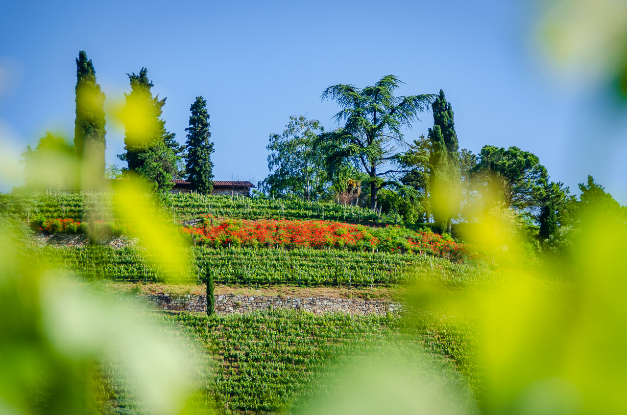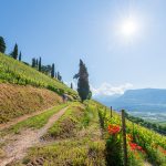 Visasvis hat vor wenigen Tagen das Hotel „Vineus Tramin“ eröffnet. Ein zwei Fotos und dann geht es den wunderbaren Kastelaz Weinberg hinauf. Heute dürfen wir direkt durch den mit Mohnblumen durchsetzen Weinberg spazieren. Die Morgensonne im Gesicht, die frischgrünen Triebe der Weinreben, die roten Mohnblumen und am Gipfel des Hügels ein Glas Weißwein. Was will „Mann“ mehr…