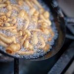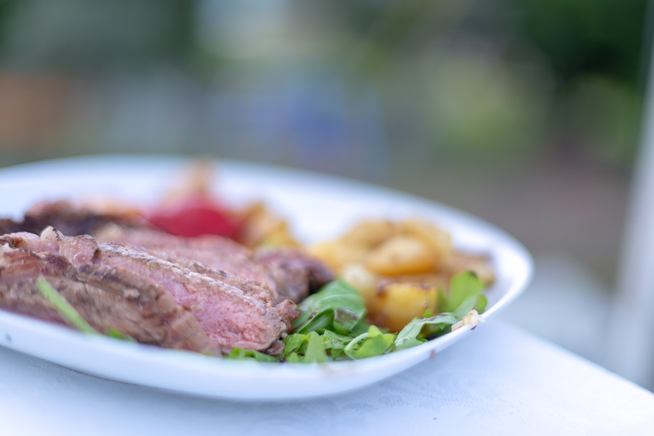 Außer Wein gibt es beim Drauhof Fiorentina und Strauben. Ideal um den Alkohol etwas auszubremsen. Wir machen Gebrauch davon. Nach einer kräftigen Tagliata sind wir wieder topfit. Zumindest nach unserem eigenen Gefühl. Stetig schlauer wird das Gerede, die Diskussionen werden anregender, die Unterhaltung intensiver… Der Weinwandertag streift seinen seriösen Anzug ab. Macht nichts, wir sind unter uns 😉
