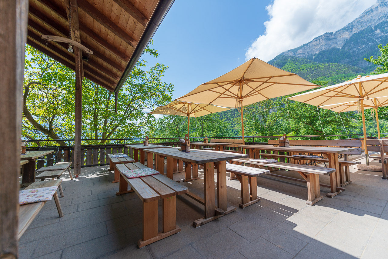 Die Knödel kommen auf den Tisch, schauen wunderbar aus und schmecken noch besser. Die neue Küche des Gummererhofes ist top! Wir lassen es uns schmecken. Großkotzig schaut uns der Schwarze Kopf, ein Gipfel des Mendelgebirges, ins Teller. Wer ihn von der Nonstaler Seiter kennt, weiß, dass er keinen Grund hat sich so großspurig aufzuführen.