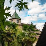 In Entiklar bei der Schlosskellerei Tiefenbrunner machen wir nicht einfach kehrt, sondern spazieren an der sehenswerten Kellerei, die auch eine Jausenstation beherbert, aber Sonntags leider geschlossen ist, zu den Apfelbaumwiesen ins Tal hinunter und dann zurück nach Margreid.