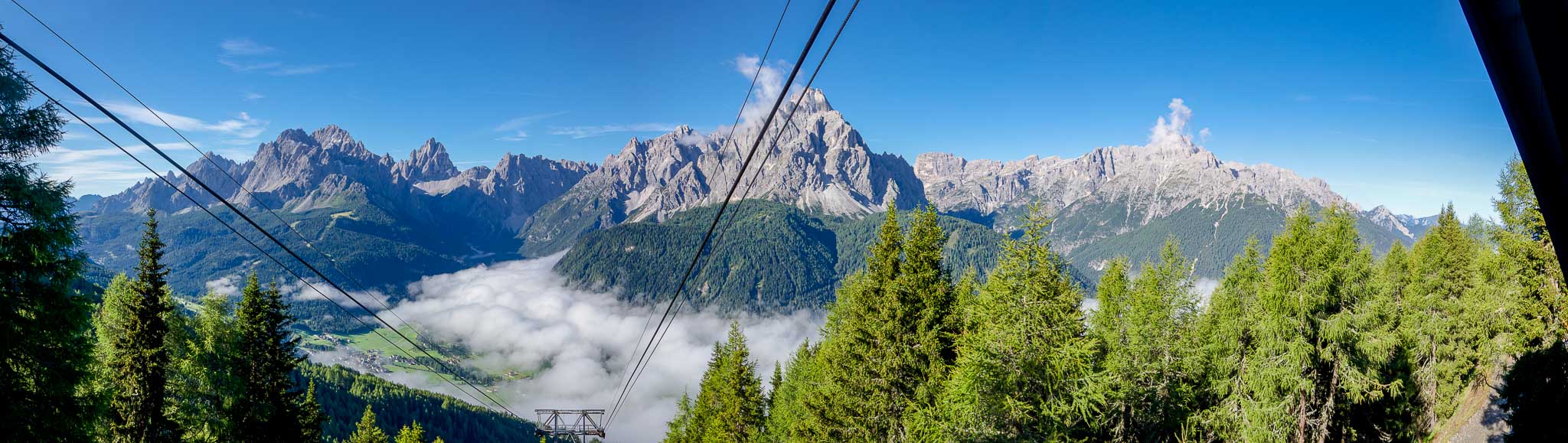 Die Nebelschwade unten im Sextner Tal ist gerade dabei, sich in Richtung Pustertal zu verziehen.