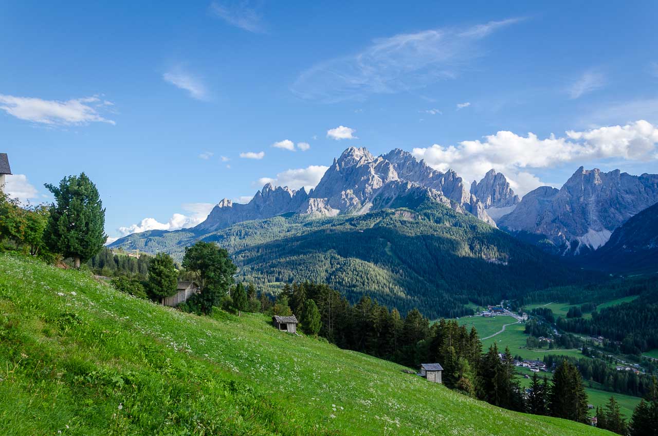 Komischerweise müssen wir ein ziemliches Stück über eine mit vielen Serpentinen bestückte Straße absolvieren. Wahrscheinlich haben wir irrtümlich den Wanderweg verlassen. Zeitlich ist es noch drin in Sexten, die zu Hause vergessenen Zahnbürsten, nachzukaufen, darum geht es noch direkt ins Dorf hinunter, bevor wir zurück zum Unterlanerhof marschieren.