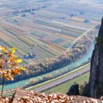 Fällt der Blick über die Wände bis in den Talboden ab, dann ist es mit der Archaik schnell vorbei. Regelmäßig Apfelbaumfelder, soweit das Auge reicht. Mitten durch die Brenner Autobahn und Südtirols größter Fluss, die Etsch. Wir stellen uns vor wie das Südtiroler Unterland früher, vor der Begradigung der Etsch, ausgeschaut hat.