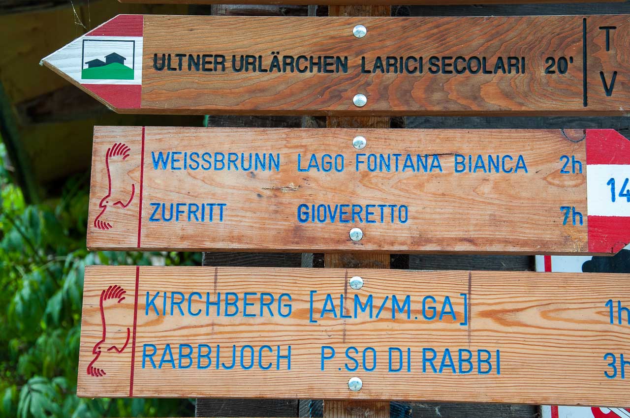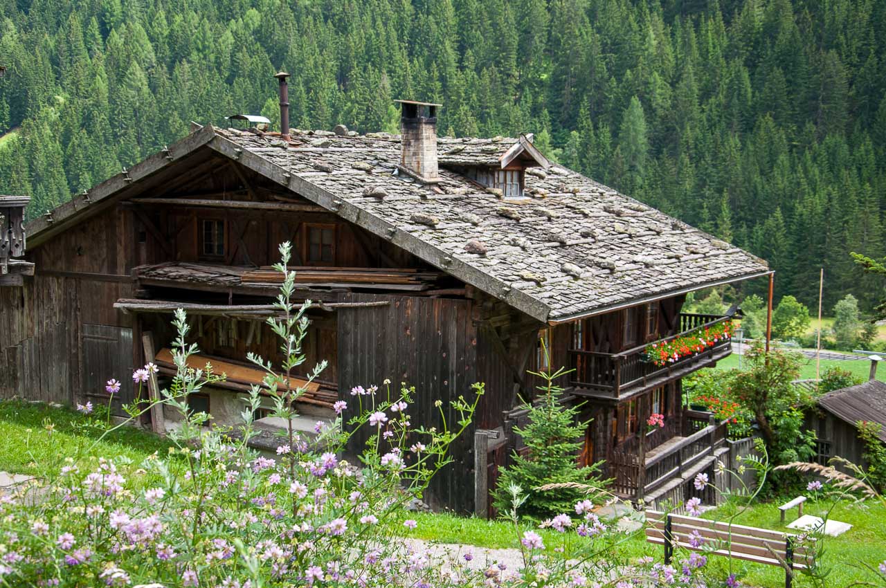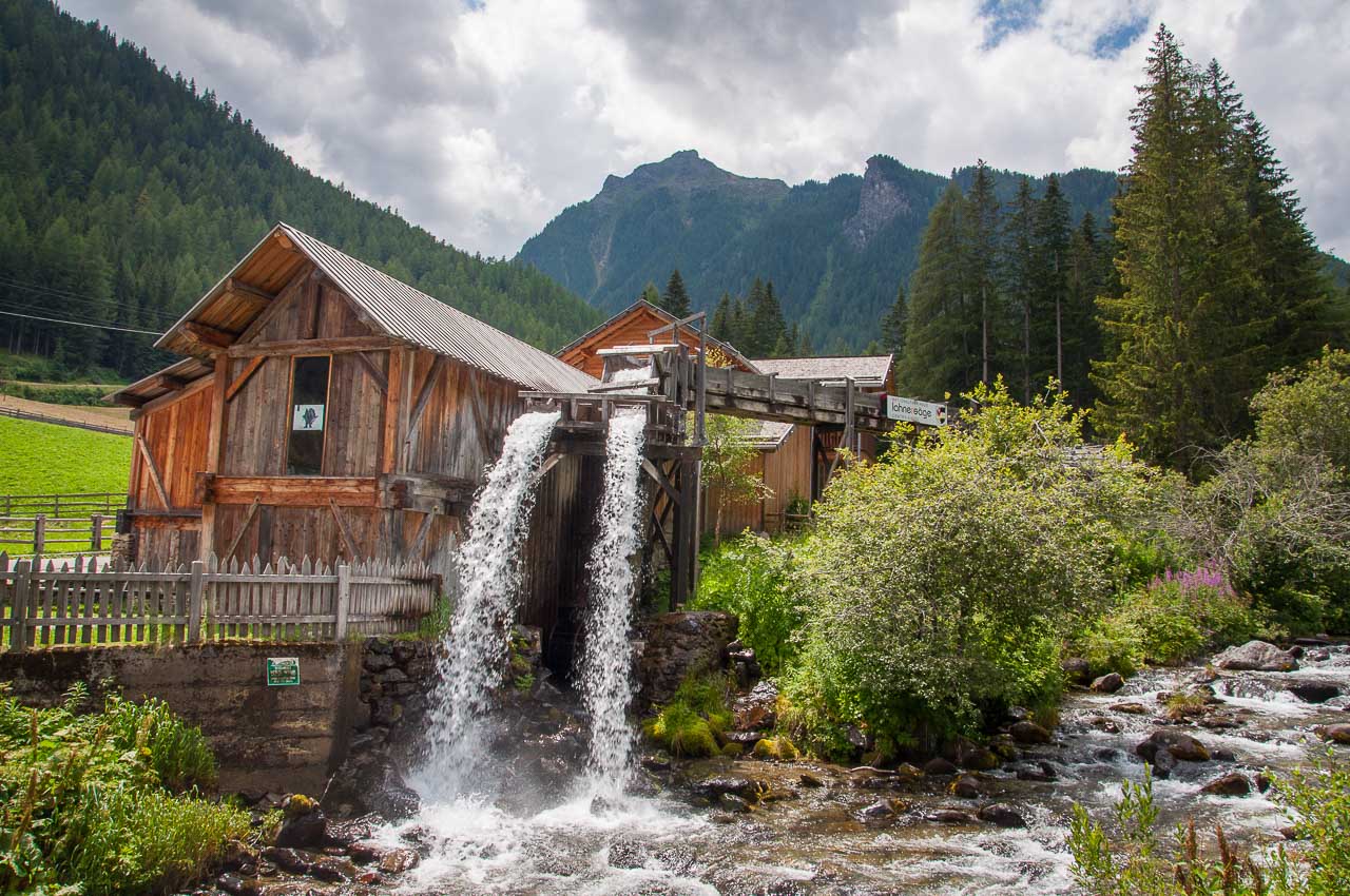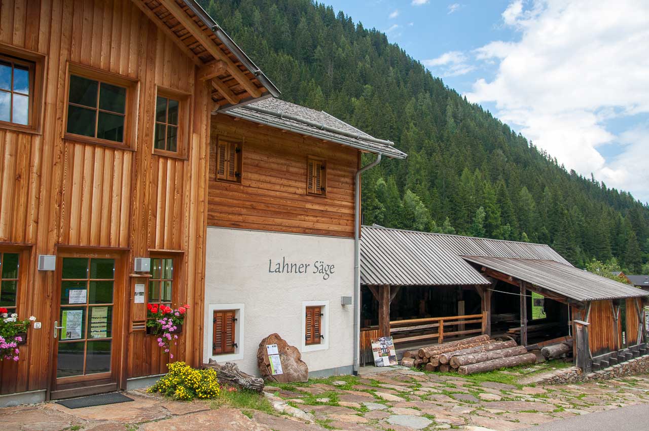 Gemütlich erreichen wir so St. Nikolaus, spazieren wieder an kleinen Mohnfeldern und schließlich am 4-Sterne Hotel Waltershof vorbei durch den Ortskern und halten uns rechts, um weiter auf dem Höfeweg zu bleiben. Ziel für heute ist das Naturparkhaus Lahnersäge, wo die Wasserkraft der Falschauer bis heute für den (Schau-)Betrieb der Säge genutzt wird. Und obwohl der Ultner Höfeweg als Rundweg angelegt ist und auf der taleinwärts links gelegenen Seite noch die bekannten Ultner Urlärchen zu bestaunen wären, entscheiden wir uns nach einem Kaffee im Hotel Arnstein in St. Gertraud dafür, das Angebot, uns bis zur Talstation der Schwemmalmbahn mit dem Auto mitnehmen zu lassen, anzunehmen.