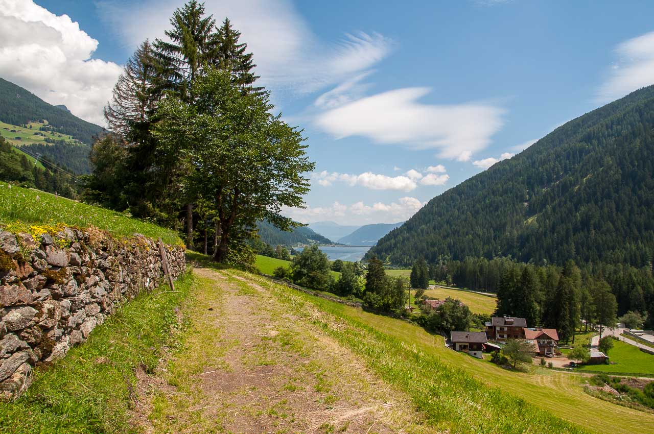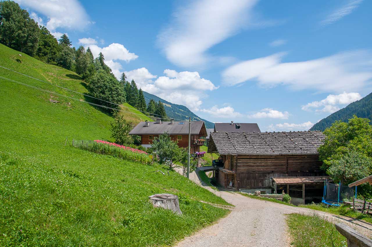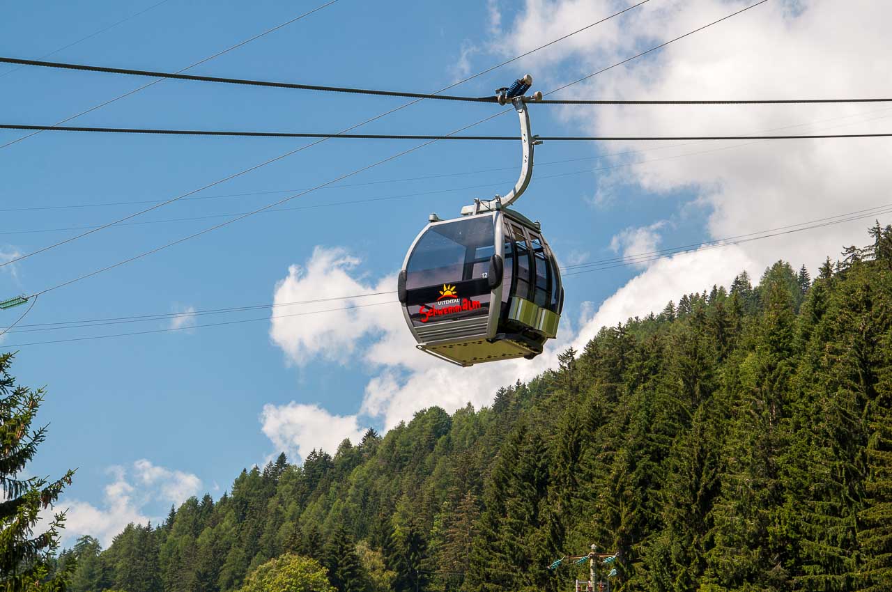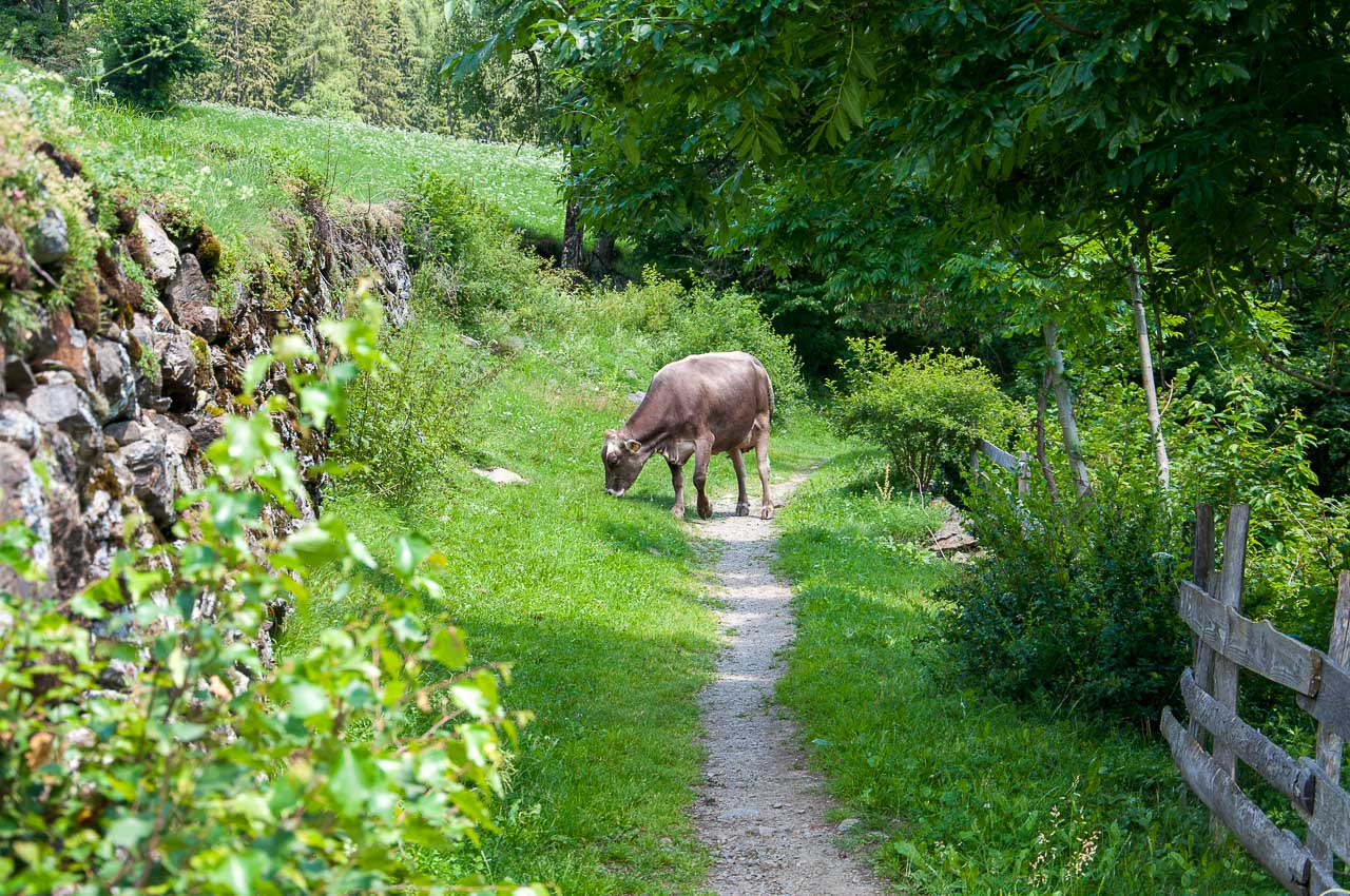 Gemütlich erreichen wir so St. Nikolaus, spazieren wieder an kleinen Mohnfeldern und schließlich am 4-Sterne Hotel Waltershof vorbei durch den Ortskern und halten uns rechts, um weiter auf dem Höfeweg zu bleiben. Ziel für heute ist das Naturparkhaus Lahnersäge, wo die Wasserkraft der Falschauer bis heute für den (Schau-)Betrieb der Säge genutzt wird. Und obwohl der Ultner Höfeweg als Rundweg angelegt ist und auf der taleinwärts links gelegenen Seite noch die bekannten Ultner Urlärchen zu bestaunen wären, entscheiden wir uns nach einem Kaffee im Hotel Arnstein in St. Gertraud dafür, das Angebot, uns bis zur Talstation der Schwemmalmbahn mit dem Auto mitnehmen zu lassen, anzunehmen.