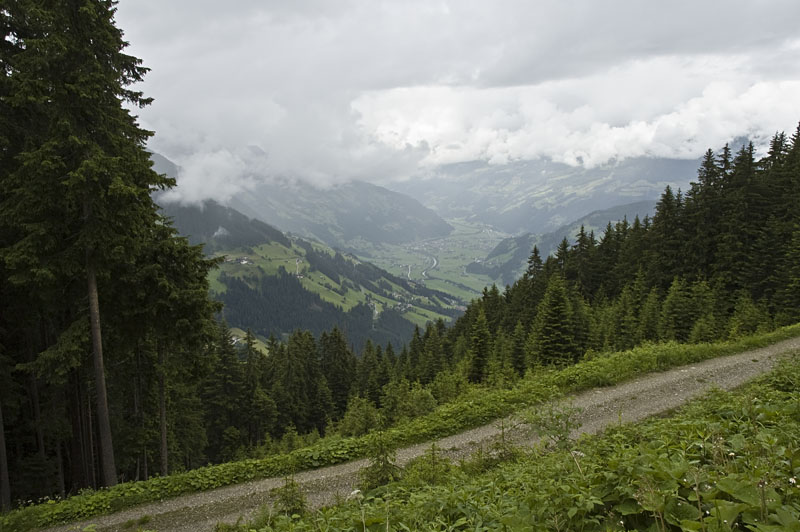 Heute, Donnerstag, sollen sich am ehesten in Nordtirol ein, zwei Stunden Sonnenschein ausgehen. Die Nase voll vom Schlechtwetter, steigen wir ins Auto und fahren durch das salzburgische Oberpinzgau, über Mittersill, vorbei an den Krimmler Wasserfällen (fünfthöchste Wasserfälle der Welt, Fallhöhe 380 m), über den kostenpflichtigen Gerlospass ins Tiroler Zillertal nach Mayrhofen.