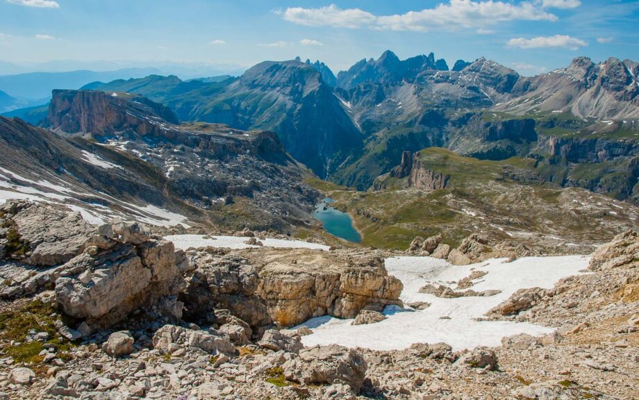 Der See ist von schroffen Dolomitfelsen und weiten Schuttflächen umgeben und gehört zu den typischen Karstseen der Dolomiten. Da er keinen oberirdischen Zu- oder Abfluss besitzt, schwankt sein Wasserstand stark im Verlauf des Jahres. Während der Schneeschmelze füllt sich die Seemulde vollständig, im Spätsommer kann der Wasserspiegel deutlich sinken.