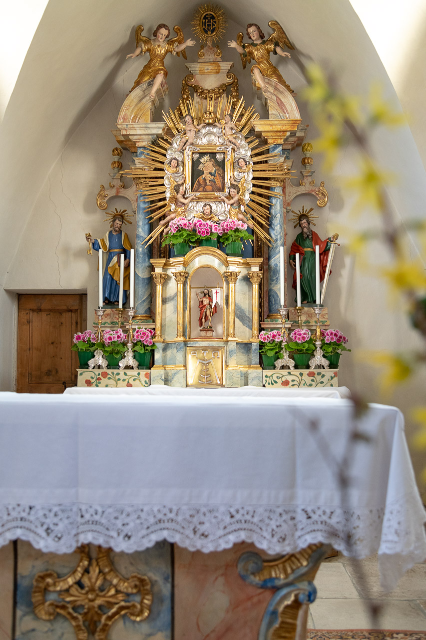 Der Rucksack ist leer gegegessen, theoretisch würden wir nun umkehren. Doch die beste Mami von allen hat über den Erdpyramiden etwas entdeckt. Da muss sie unbedingt rüber! Was hat sie entdeckt? Eine Wallfahrtskirche! Die beste Mami von allen kommt an keiner Kirche vorbei und wenn es noch dazu eine Wallfahrtskirche ist, dann wird auch gut und gerne ein Umweg in Kauf genommen.