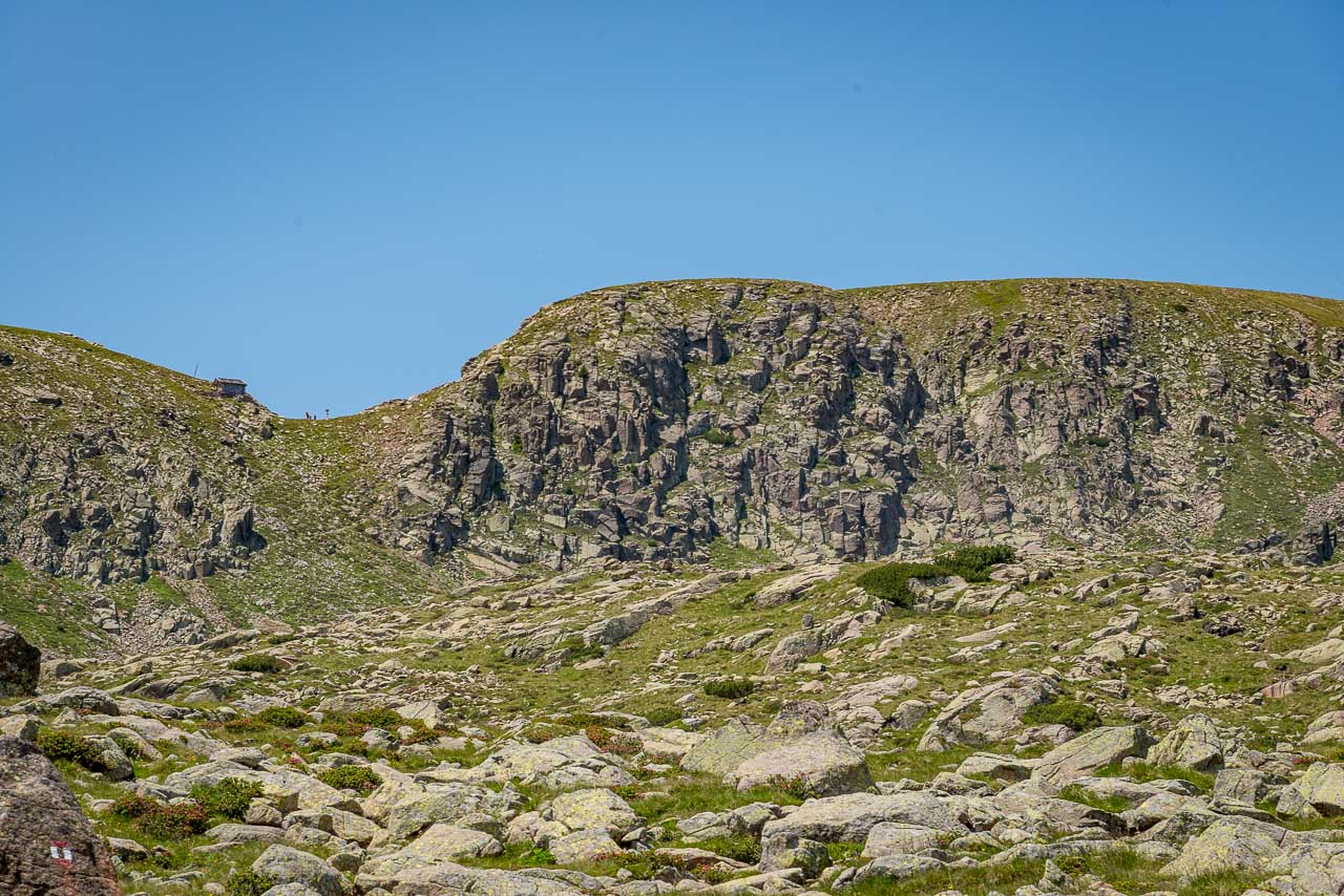 Die kleine Scharte, das Schartl mit dem Biwak ist bereits in Sicht. Jetzt müssen wir nur noch die von der Sarner Scharte und dem Villanderer Berg eingekesselten Königslacken queren und in Serpentinen den steilen, gerölligen Steig zum Biwak aufsteigen.