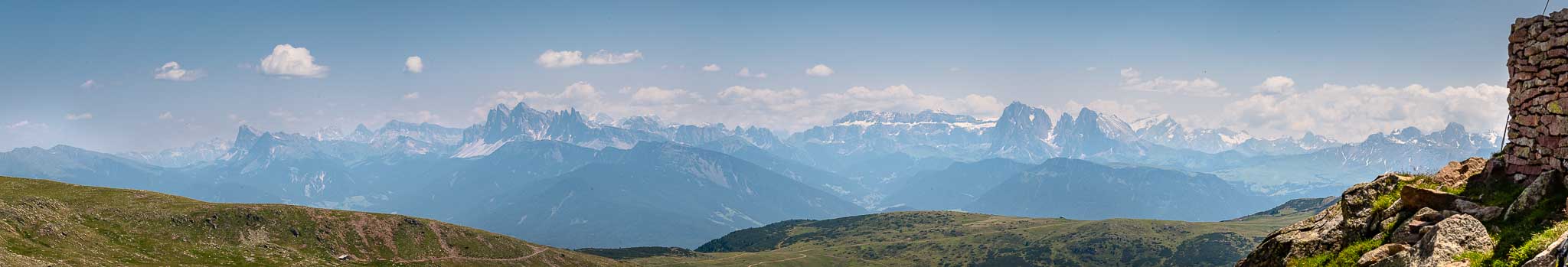Als ich vor rund 20 Jahren mit 2 Kumpels von Oberbozen, nach Pemmern und so wie ich mich erinnere mit dem alten Sessellift gemächlich nach oben schwebte, hatten wir einen traumhaft schönen Tag und konnten schön rüber aufs Langkofelmassiv schauen. Damals legte die Wirts- oder Almfamilie gerade den Almweg von der Bergstation zum Rittnerhornhaus neu an, wir mühten uns über den etwas lehmigen Weg zum Hornhaus nach oben. Die Sicht am späten Nachmittag an einem herrlichen September war traumhaft schön.