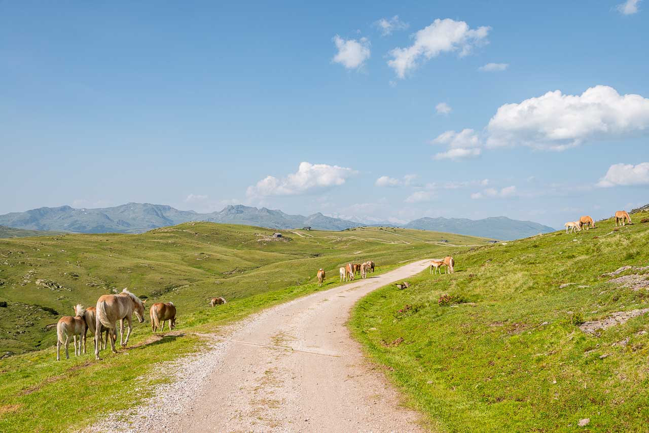 Über den Europäischen Fernwanderweg E10 wandern wir nun leicht abwärts bis zum Gasteiger Sattel hinunter. Ab hier befinden wir uns bereits auf Villanderer Gemeindegebiet.