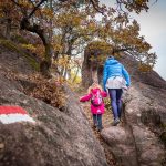 Reingeschlüpft in die festen Bergschuhe und auf nach Gmund. Von Gmund führt uns der Wanderweg Nr. 13 zuerst einige Stufen und dann ordentlich steigend, durch den meist mit Eichen durchzogenen Laubwald empor. Teilweise muss ich Anna über Knie hohe Stufen hinaufziehen. Sie hält sich trotz der Anstrengung recht wacker.