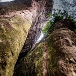 Nach einer Stunde haben wir die nicht ganz 400 Höhenmeter geschafft und stehen bei den moosbewachsenen Rosszähnen. Zwischen zwei Zähnen können wir sogar hindurch gehen. Und wer ganz wagemutig ist, der kann auf einen Zahn hinauf kraxeln und den Weitblick über das Südtiroler Unterland nach Bozen genießen.
