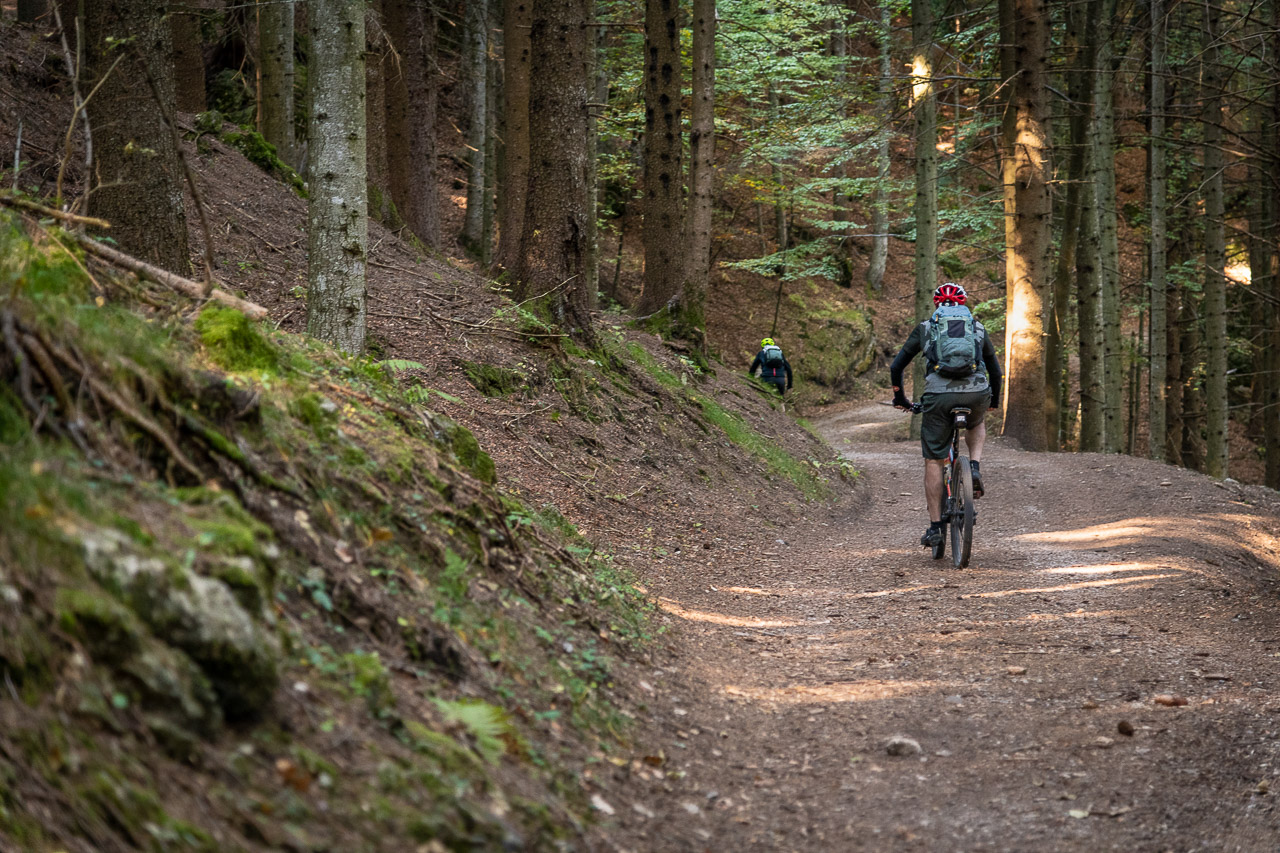 Der Abstieg über den Kanzelweg nach Mazon ist für einen Wanderer eher wenig spektakulär. Ab und zu erhascht er einen Blick hinüber nach Tramin. Für Mountainbiker schaut die Sache schon anders aus. Die Abfahrt ist sicherlich richtig verrauschend für geübte Biker.