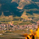Sonnenstrahlen blitzen durch das Laubdach. Der Weiler Gschon ist erreicht. Verwundert blicken wir auf das kleine Plateau vor uns. Zuerst ein großer Weinberg in Herbstfarben, rechts der Blick hinunter ins Südtiroler Unterland auf den Kalterer See und auf unser Heimatdorf Tramin, vor uns ein malerisches Kirchlein mit Holzturm, das sich als ein Kapuziner Kloster entpuppt, wenige, aber sehr gepflegten Höfe und getrennt durch das tiefe Tal des Plentenbachs, der idyllisch Bauernhof Gstoager Hof.