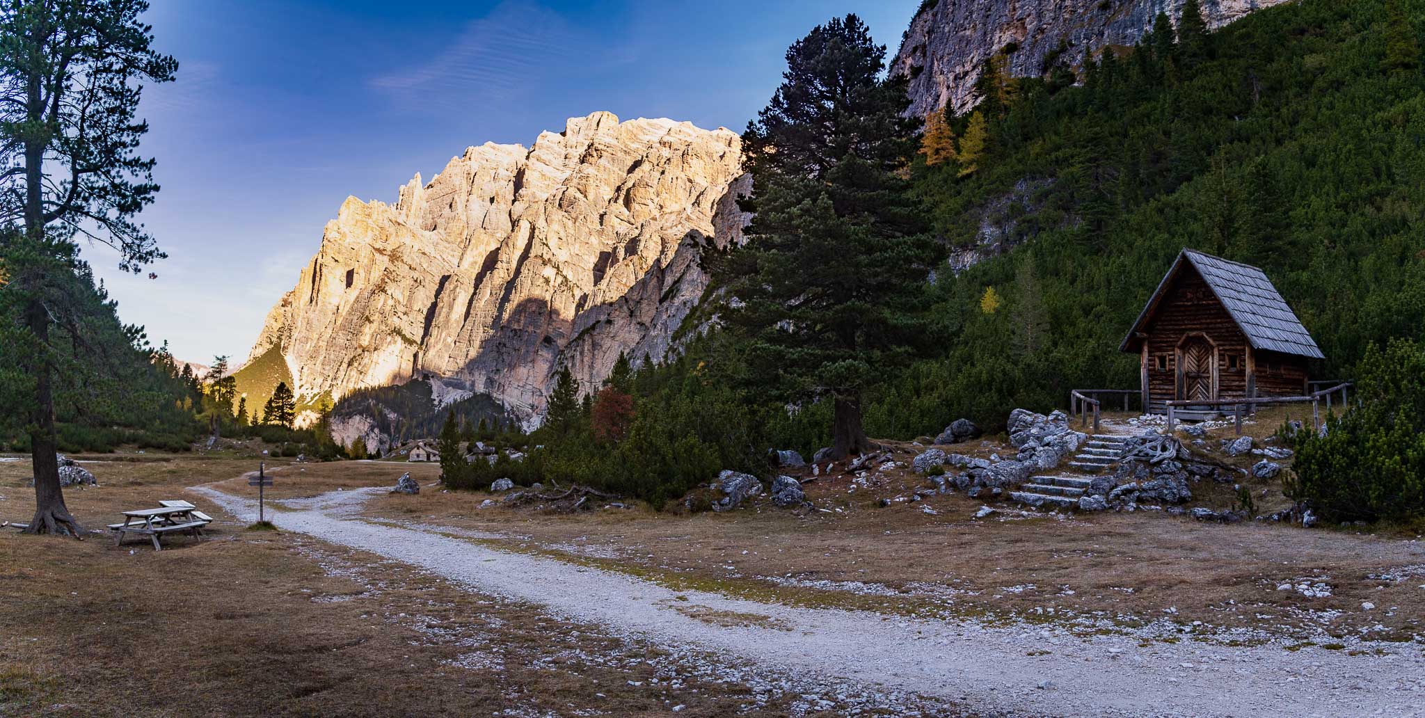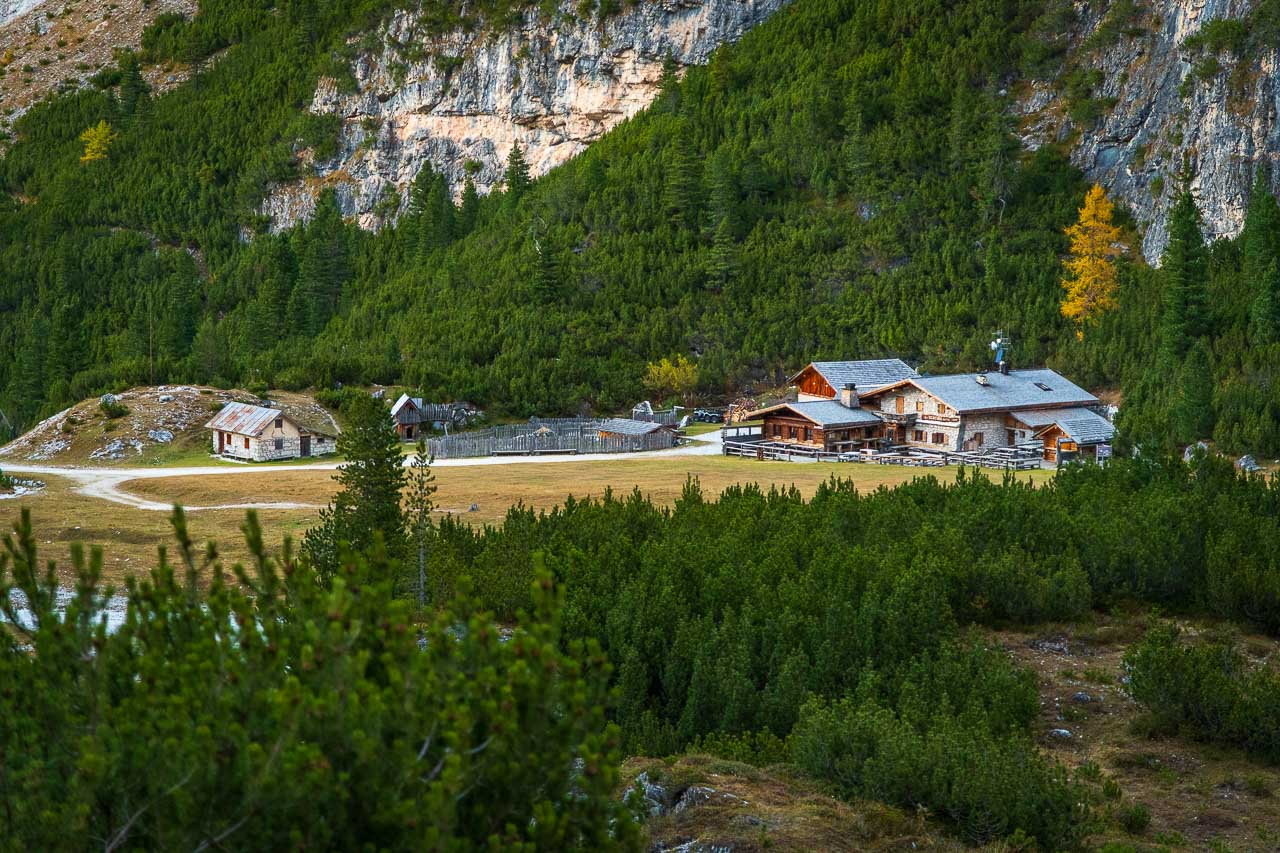 Wohin also diesmal? Hm, da fällt mir ein: In meiner Rubrik „Schutzhütten“ fehlen noch bei einigen wenigen Hütten eigene Fotos – das könnte also die richtige Gelegenheit sein. Also nachgesehen: Von welcher Dolomitenhütte habe ich noch kein eigenes Bild? Genau, von der Scotoni-Schutzhütte im Naturpark Fanes-Sennes-Prags.