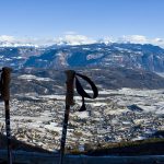 Nach ca. 1,5 Stunden kommen wir an einem wunderschönen Aussichtspunkt vorbei. Hier sieht man weit über das Überetsch hinaus. Direkt unter uns liegt die Marktgemeinde Kaltern mit St. Anton und St. Nikolaus. Rechts davon sehen wir den noch nicht zugefrorenen Kalterer See mit der darüber thronenden Leuchtenburg, links davon Eppan und dahinter die Alpenstadt Bozen.