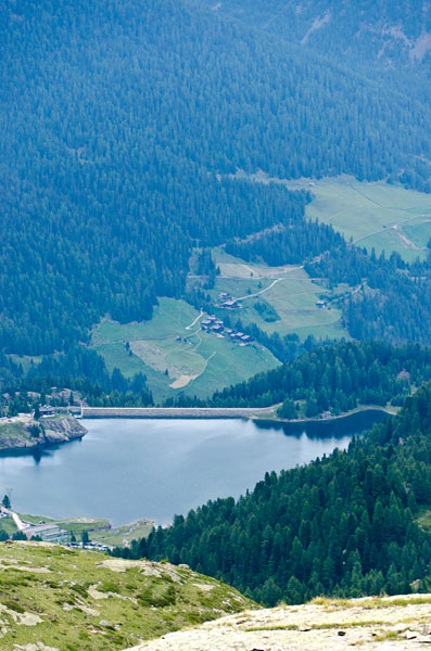 Talschluss Ultental: Blick hinunter zum Weißbrunnsee