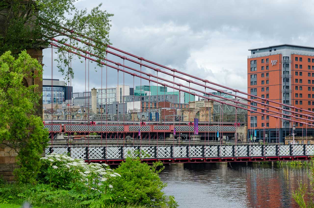 Über die Victoria Bridge überqueren wir den Fluss Clyde, gehen über die South Portland Street über eine Fußgängerbrücke wieder zurück und besuchen den Central Bahnhof. Ein gewaltiges Gebäude, lichtdurchflutet, groß und betriebsam, gefällt mir.