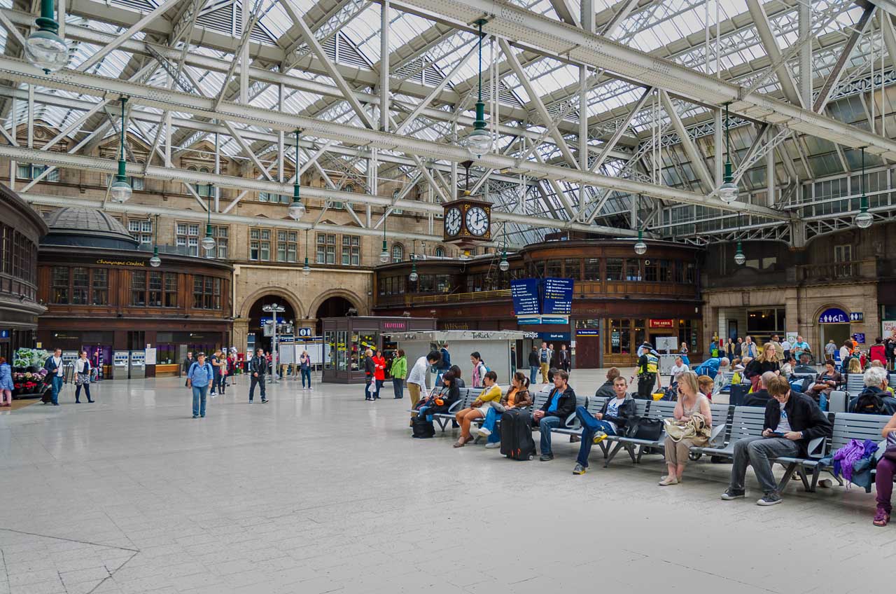 Schon allein der Bahnhof in Glasgow (wir halten am Queen Street Bahnhof und nicht am Central Bahnhof) ist beeindruckend. Ich werde mir unbedingt auch noch den Central Zugbahnhof anschauen müssen.