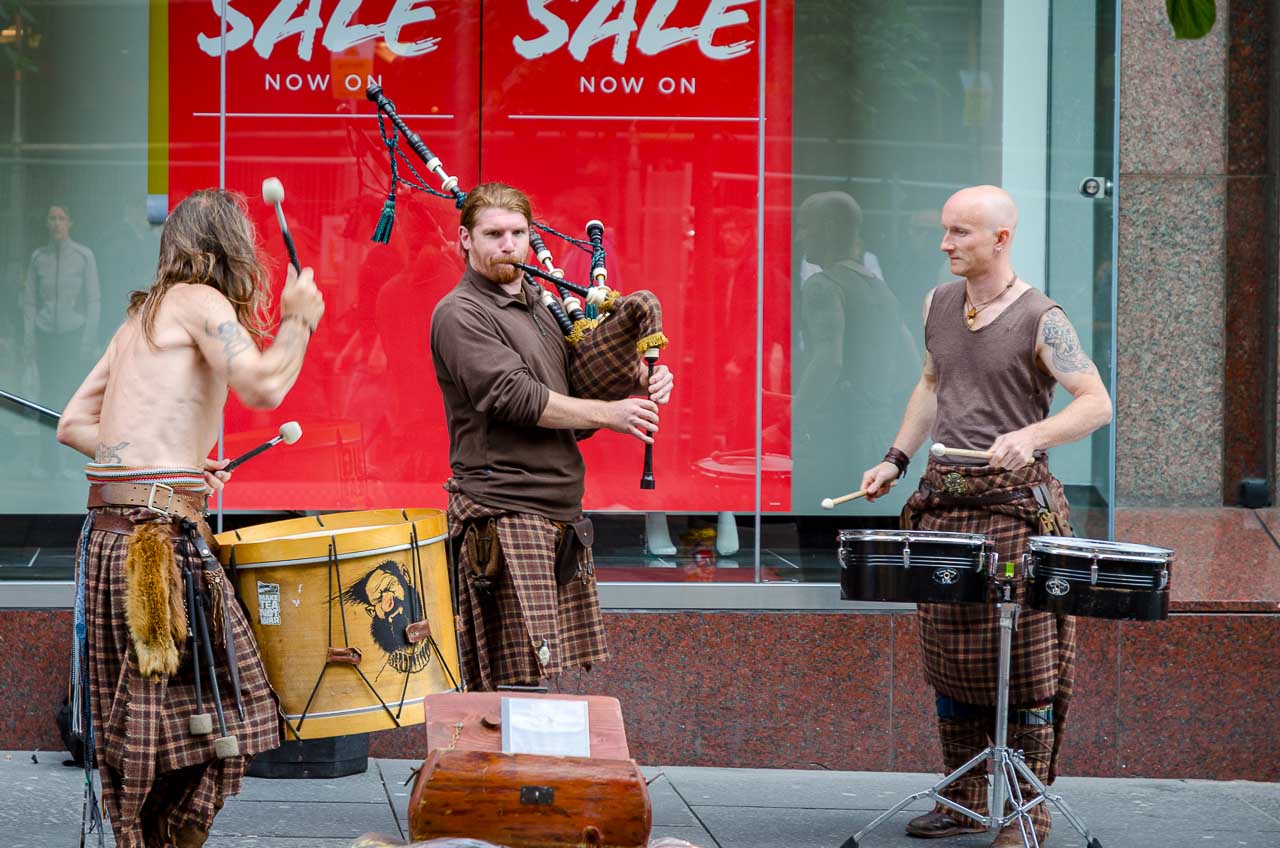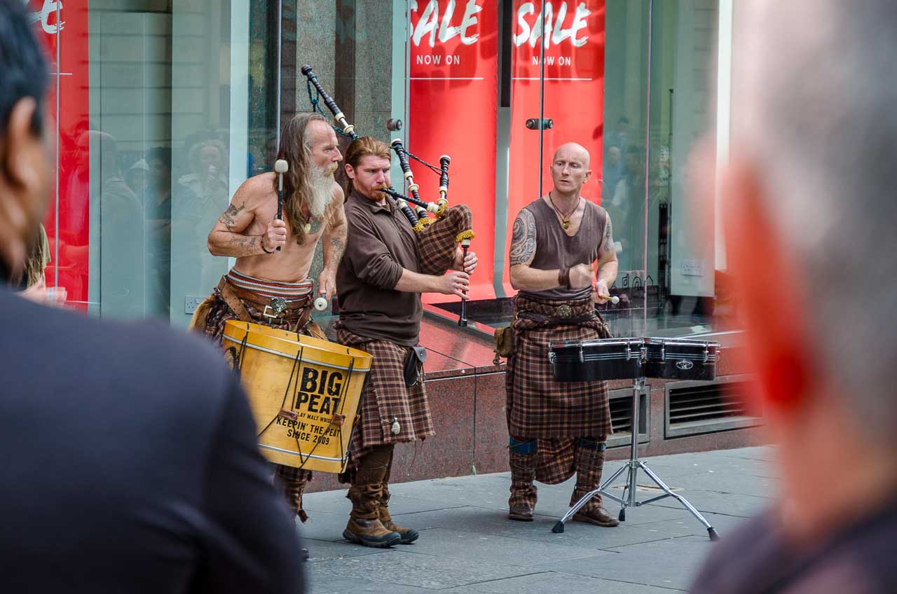 Die Schotten essen und trinken scheinbar überall. Im Stehen, im Gehen, beim Zugfahren. Der McDonald’s-artige Kaffeebecher ist bei jedem Schotten in der Hand. Für uns ist das sehr ungewohnt.