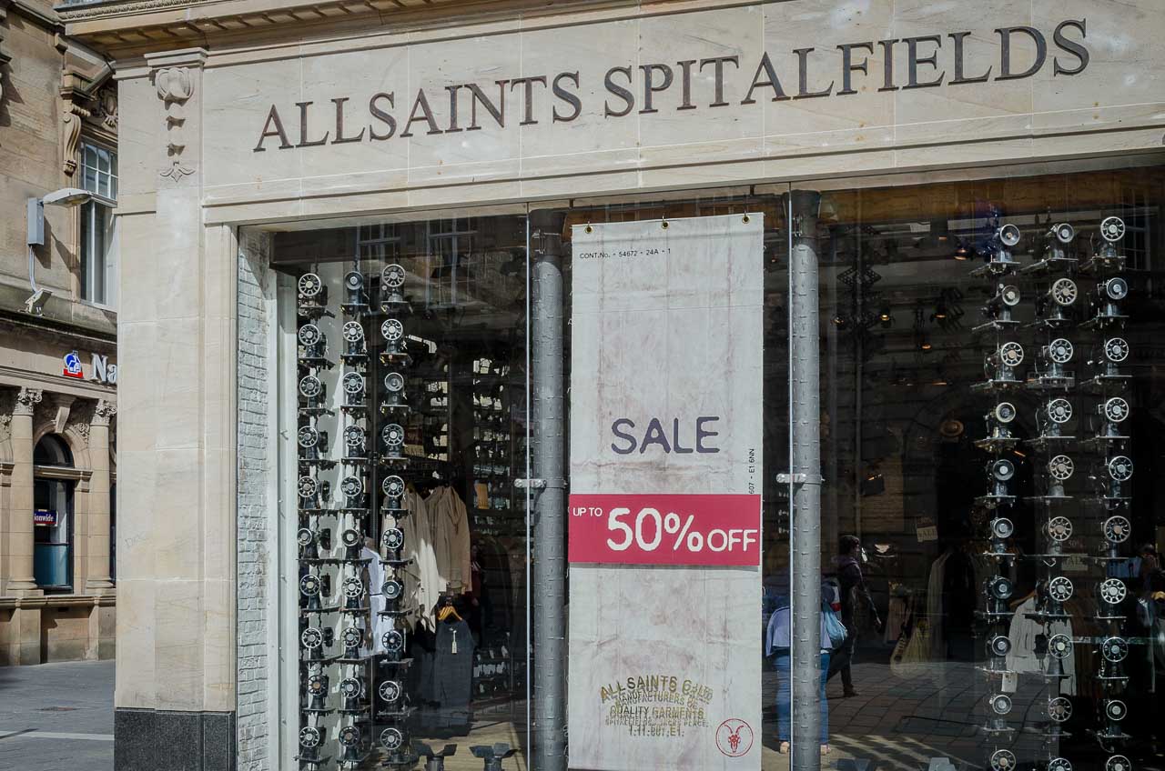 Weiter schlendern wir durch die heute nicht sehr belebten Straßen. Der Spaziergang durch die Shoppingmeilen von Glasgow wird für mich so langsam zum Schrecken. Auch hier sind die Dimensionen um einiges imposanter als ich es gewöhnt bin: Riesige Geschäfte, Shoppingcenter wie ich sie noch nie gesehen habe, nicht in Mailand, nicht in München, nicht in Wien oder Düsseldorf. Mir schwant Böses.