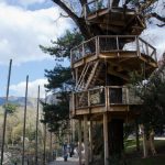 Der Laurin will unbedingt das gewaltige Baumhaus bezwingen, welches zugleich eine tolle Aussichtsplattform auf die Passerstadt Meran mit der Passerpromenade, der Tappeinerpromenade mit dem Pulverturm und dem Meraner Kirchturm darstellt. Leider ist die Baumhaus-Plattform gesperrt. Man darf nur zu bestimmten Uhrzeiten rauf.