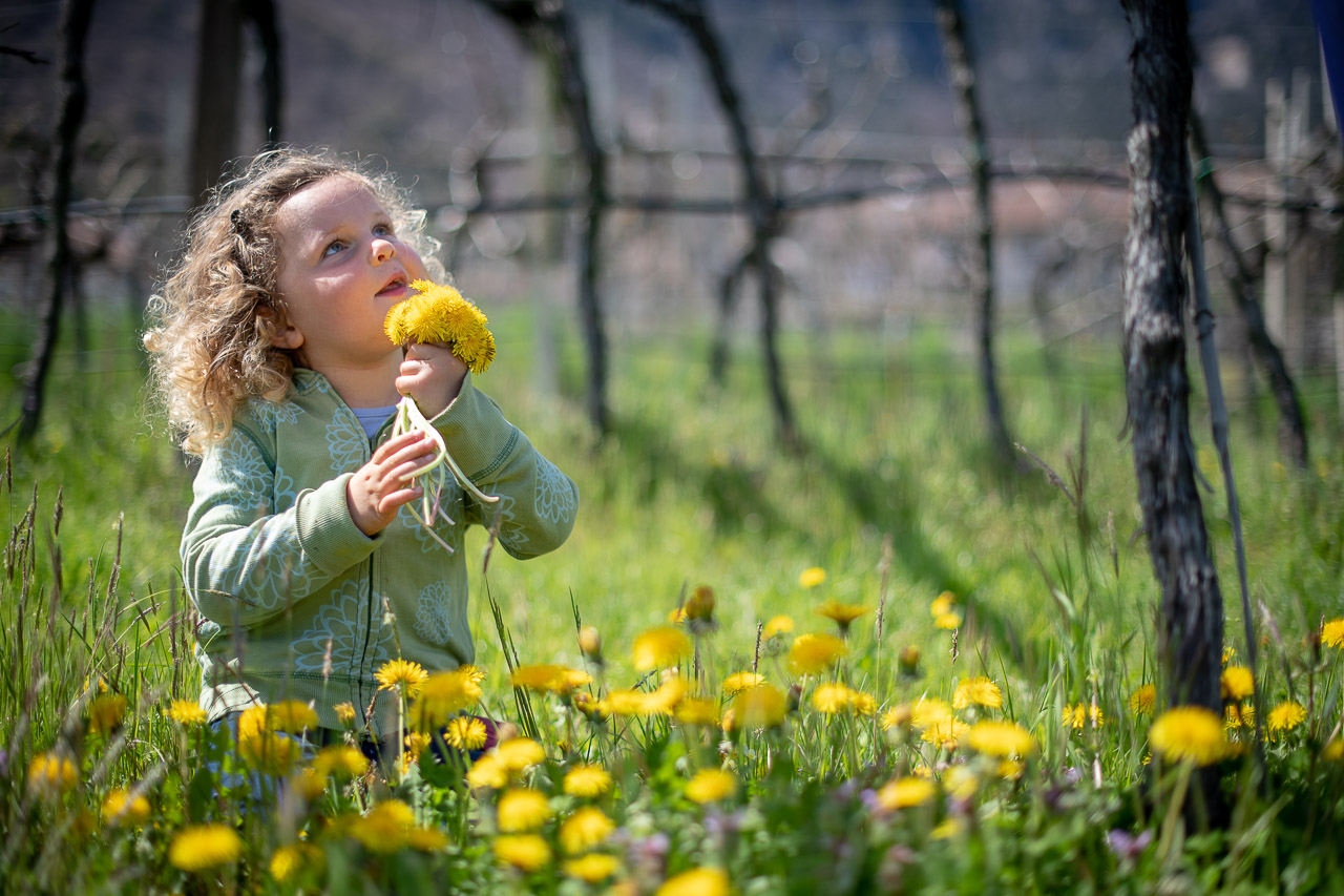 Gelber Löwenzahn überall. Anna ist nicht mehr zu halten. Rein in die Weinberge und tun was kleine Prinzessinnen so tun. Blumen pflücken. Eine Sträußl für die Magdalena, das muss sein. Der Frühlingsspaziergang kommt so richtig ins Stocken. Was solls, so ein herrlicher Frühlingstag gehört ausgekostet, da muss die beste Mami von allen einfach einmal auf den Wandersport verzichteten. Dem Tati ist das sowieso recht.