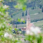 Den Blick Richtung Kirchturm Tramin und St. Jakobkirchlein gerichtet, spazieren wir gemütlich bis zum Sportplatz zurück. Anna schafft den ganzen Weg auf dem Laufrad. Bravo!