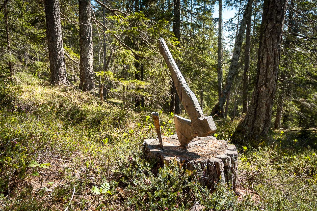 Wir fahren nach Tiers / St. Zyprian (1.175 m), dann auf der Nigerpassstraße weiter und finden wenige hundert Meter nach dem Hotel Cyprianerhof auf der rechten Straßenseite einen Parkplatz (1.200 m), der zugleich auch den Startpunkt des Wanderweges Nr. 7 (Sagenweg) markiert.