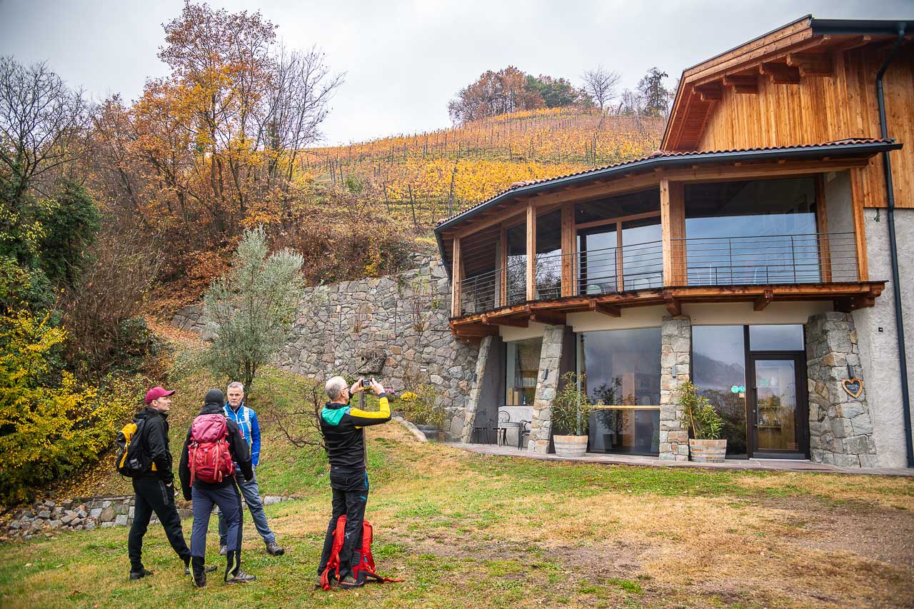 Gut, eigentlich müsste uns das klar sein, denn wir haben ja auch einen Gastronom in unserer Runde. Armin kann heute nur deshalb mitwandern, weil er seinem Restaurant, dem Ansitz Romani, gerade ein paar Ruhetage gönnt. Warum? Weil in Südtirol derzeit nicht viel los ist. Für viele Touristiker ist diese Zeit eine willkommene kurze Verschnaufpause, bevor der Weihnachtstrubel beginnt. Für uns bedeutet das: sehnsüchtig durchs Schaufenster spähen und weiterwandern.