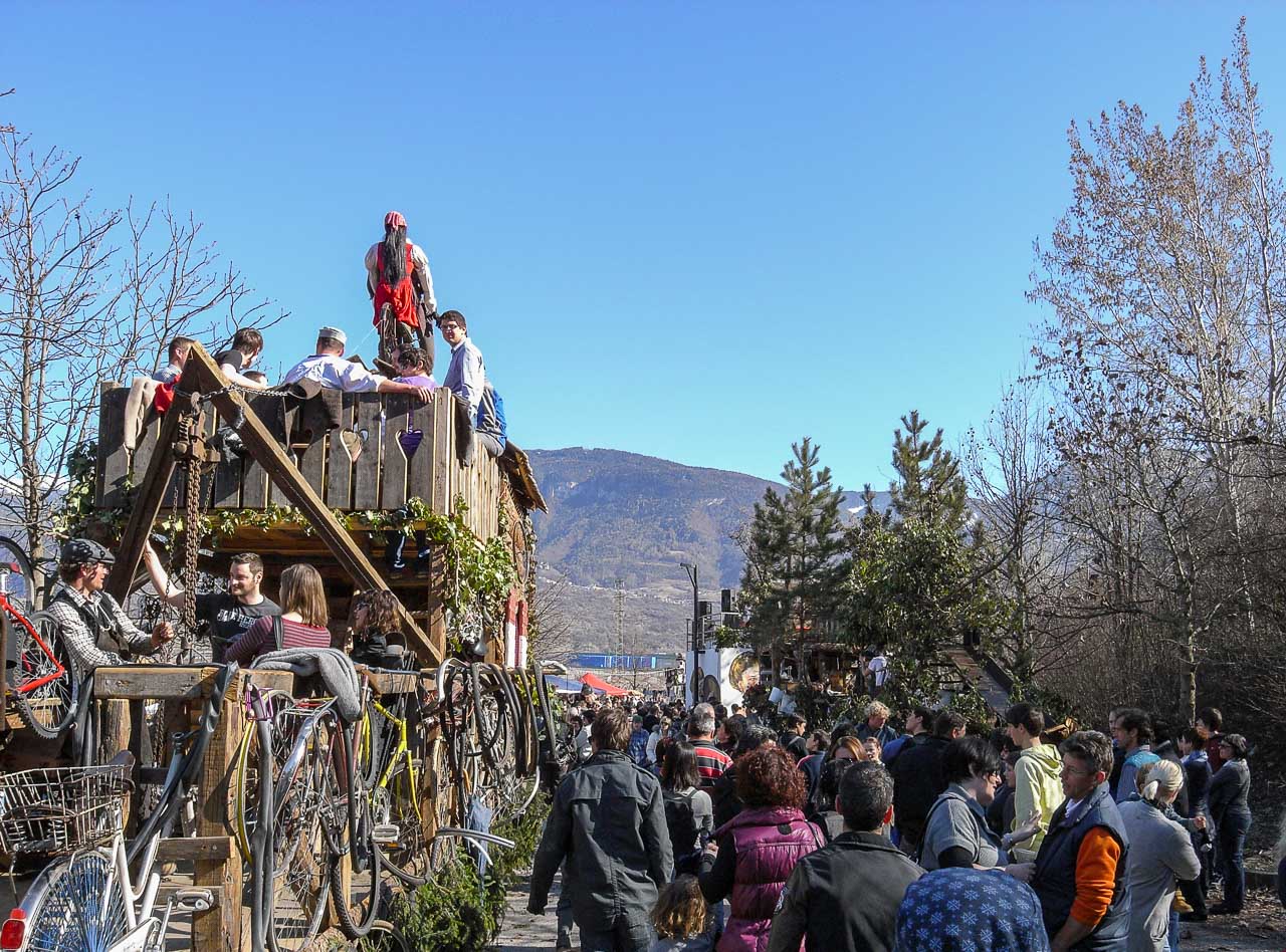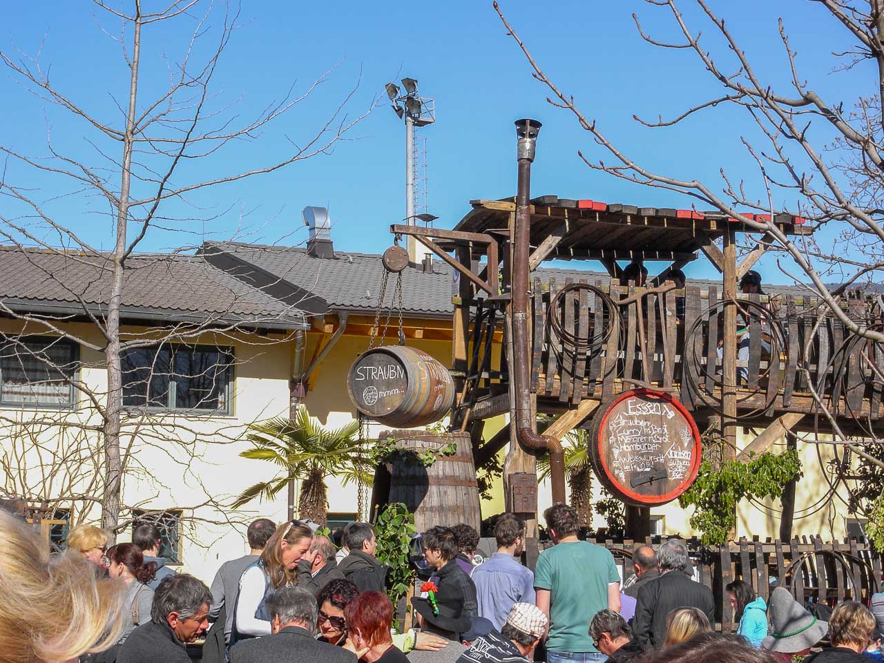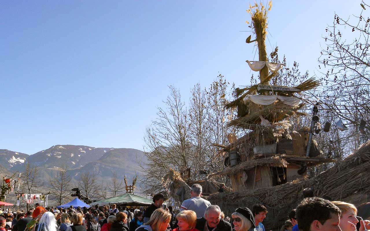 Da so mancher Traminer für den Bau der „prächtigen“ und vor allem aufwendigen Umzugswagen nicht nur Zeit, sondern auch Geld investiert, werden am Sonntag vor dem Umzug die Wagen bei Speis und Trank zur Schau gestellt, sodass die fleißigen Wagenbauer zumindest eine kleine Einnahme damit generieren können.