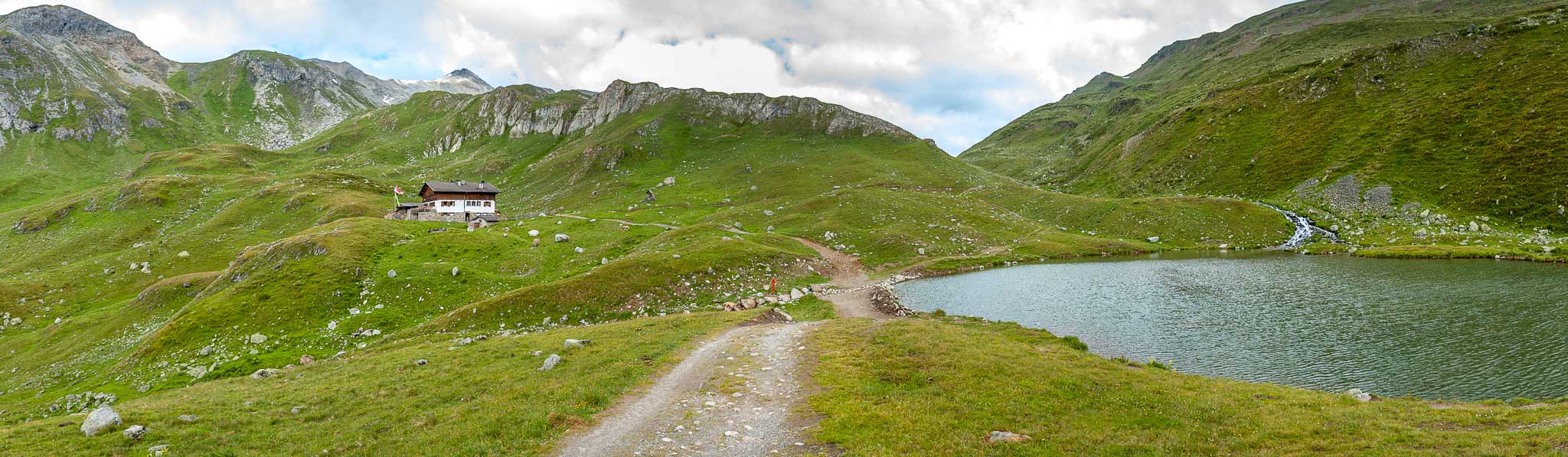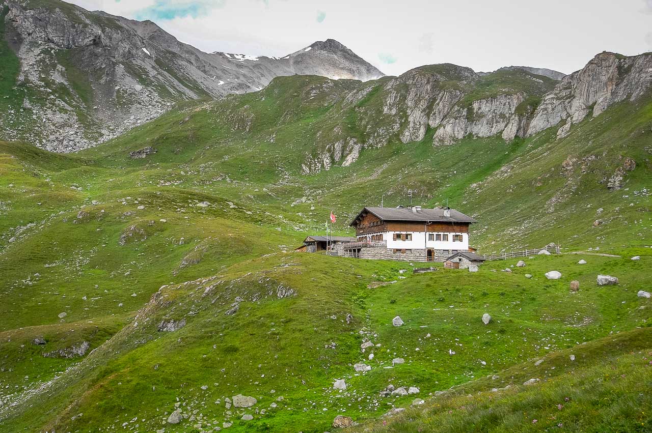 Nach insgesamt einer Stunde recht zügiger Wanderung stehen wir tatsächlich vor der Sesvenna Hütte auf 2.260 m und fragen uns, warum man in Schlinig für diese Wanderung 2,5 Stunden angegeben hat. Ein Blick auf das GPS verrät den Grund: Wir waren mit 5 km/Stunde schnell unterwegs.