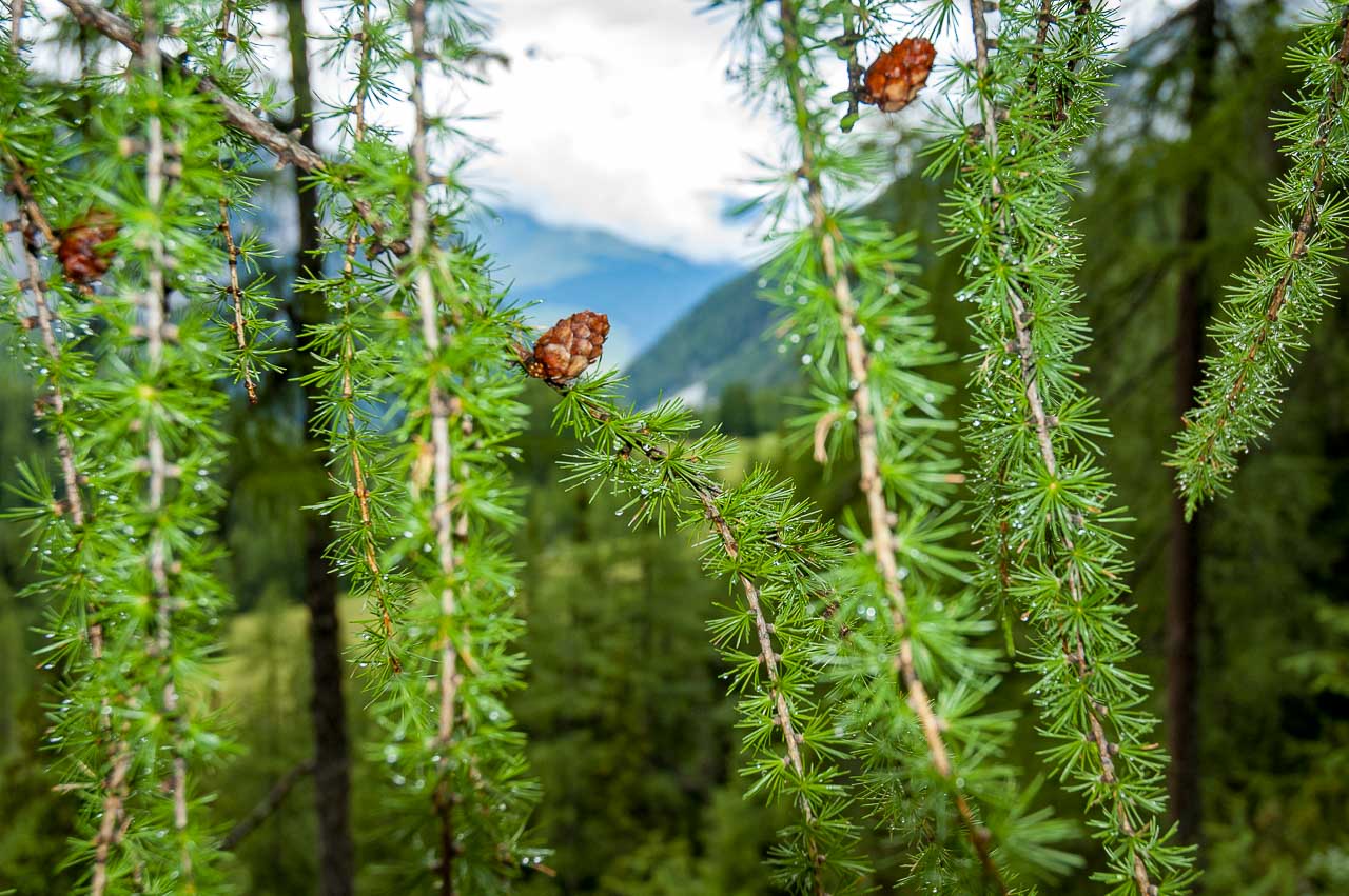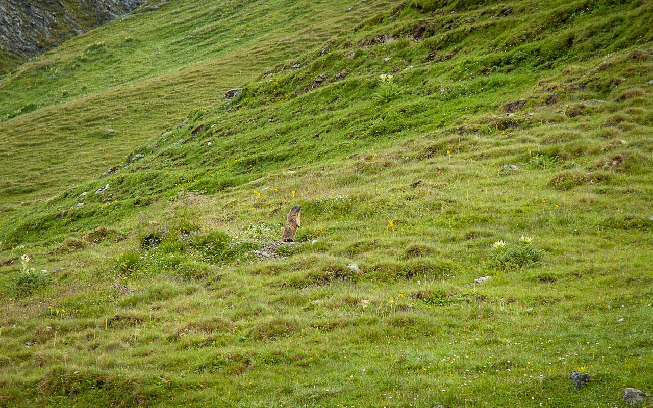 Tramin, 5.45 Uhr frühmorgens: 23,5°. Fahrt nach Schlinig (ital.: Slingia), Ankunft 9.15 Uhr: 13°, leichter Nieselregen. 10.30 Uhr, die Bergschuhe sind angezogen, der Nieselregen ist vorbei, aber der kalte Wind fährt in Mark und Bein.