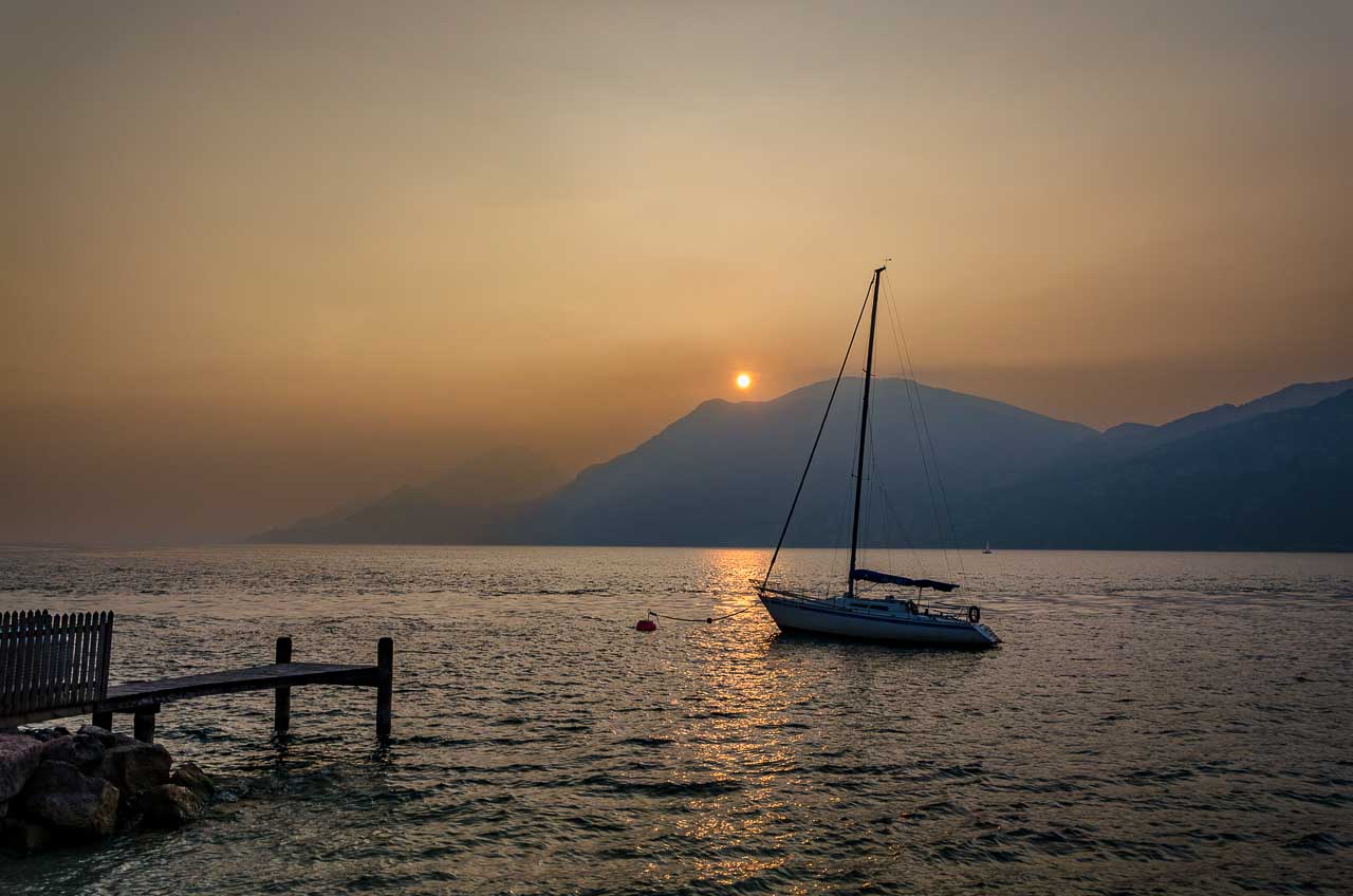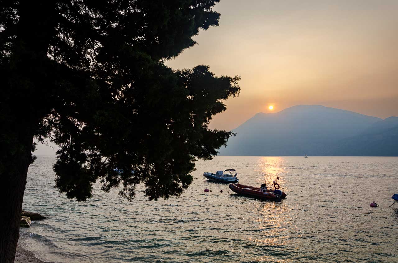 Abendstimmung am Gardasee bei Malcesine unter dem Monte Baldo.