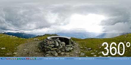 Trotz der miesen Wetterlage, weil ich die schwere Fotoausrüstung hochgeschleppt habe, muss jetzt noch ein 360° Foto gemacht werden. Ist ja mal was anders: die eine Hälfte im Sonnenschein, die andere im Regen.
