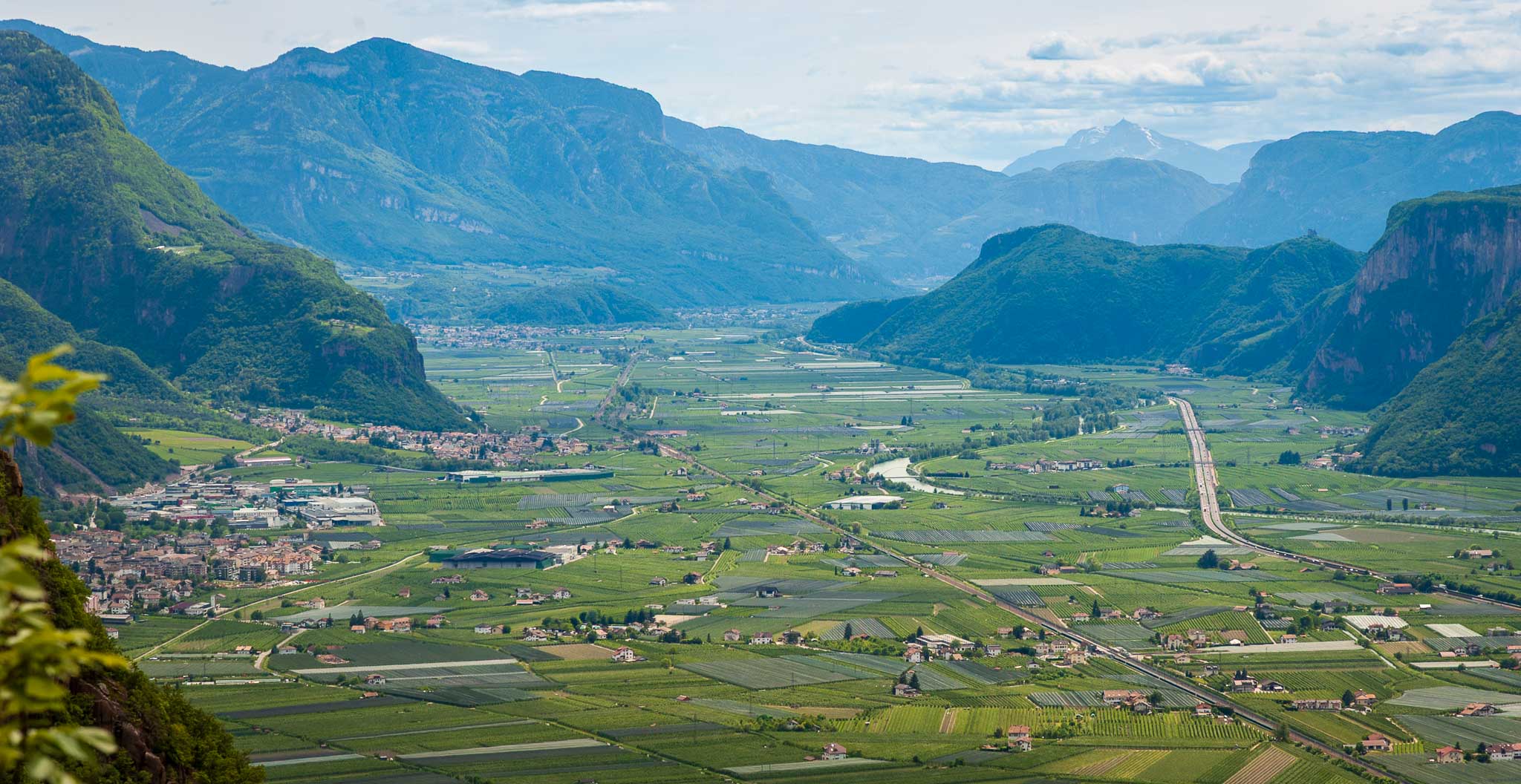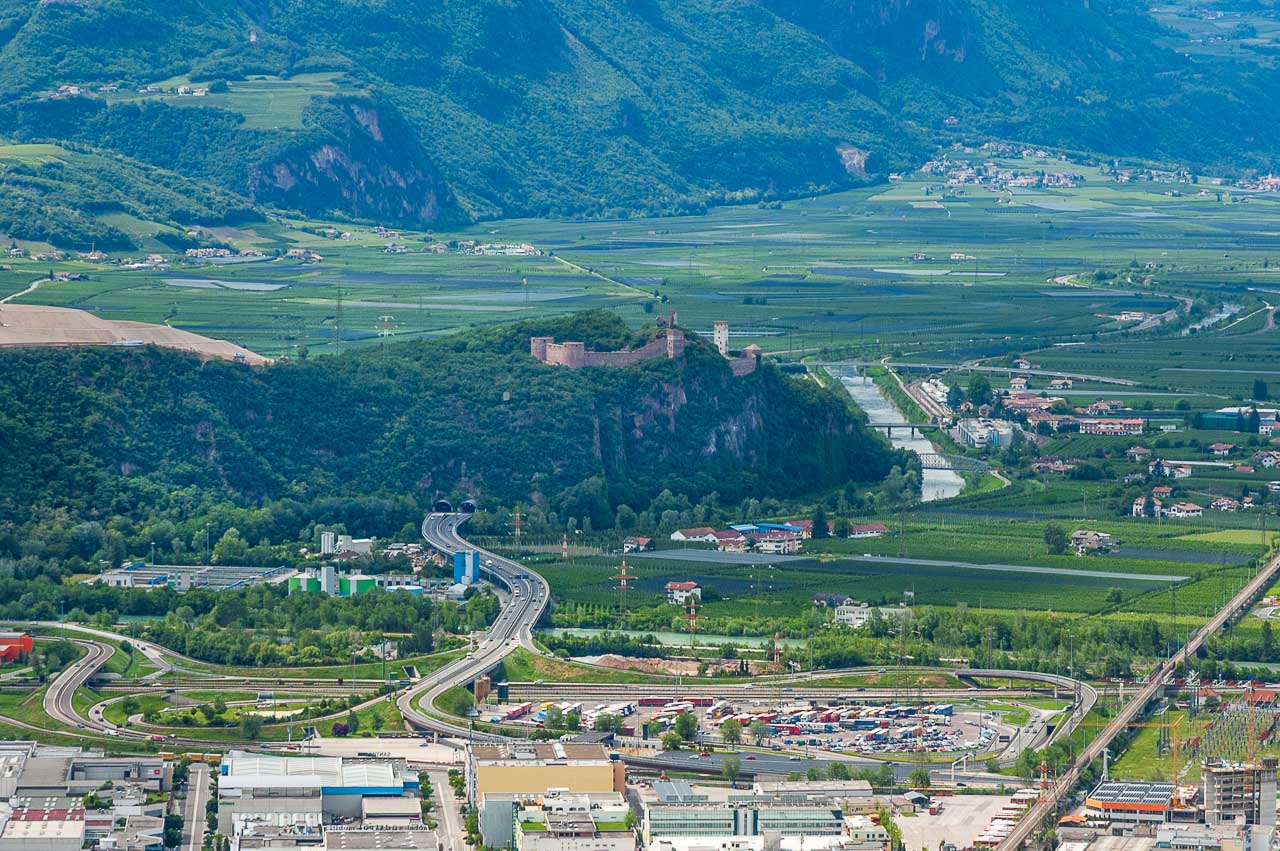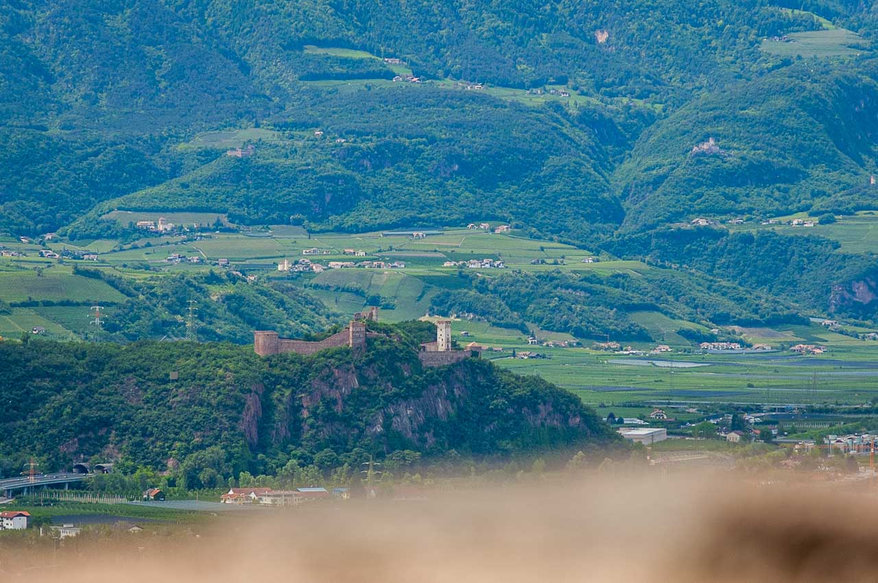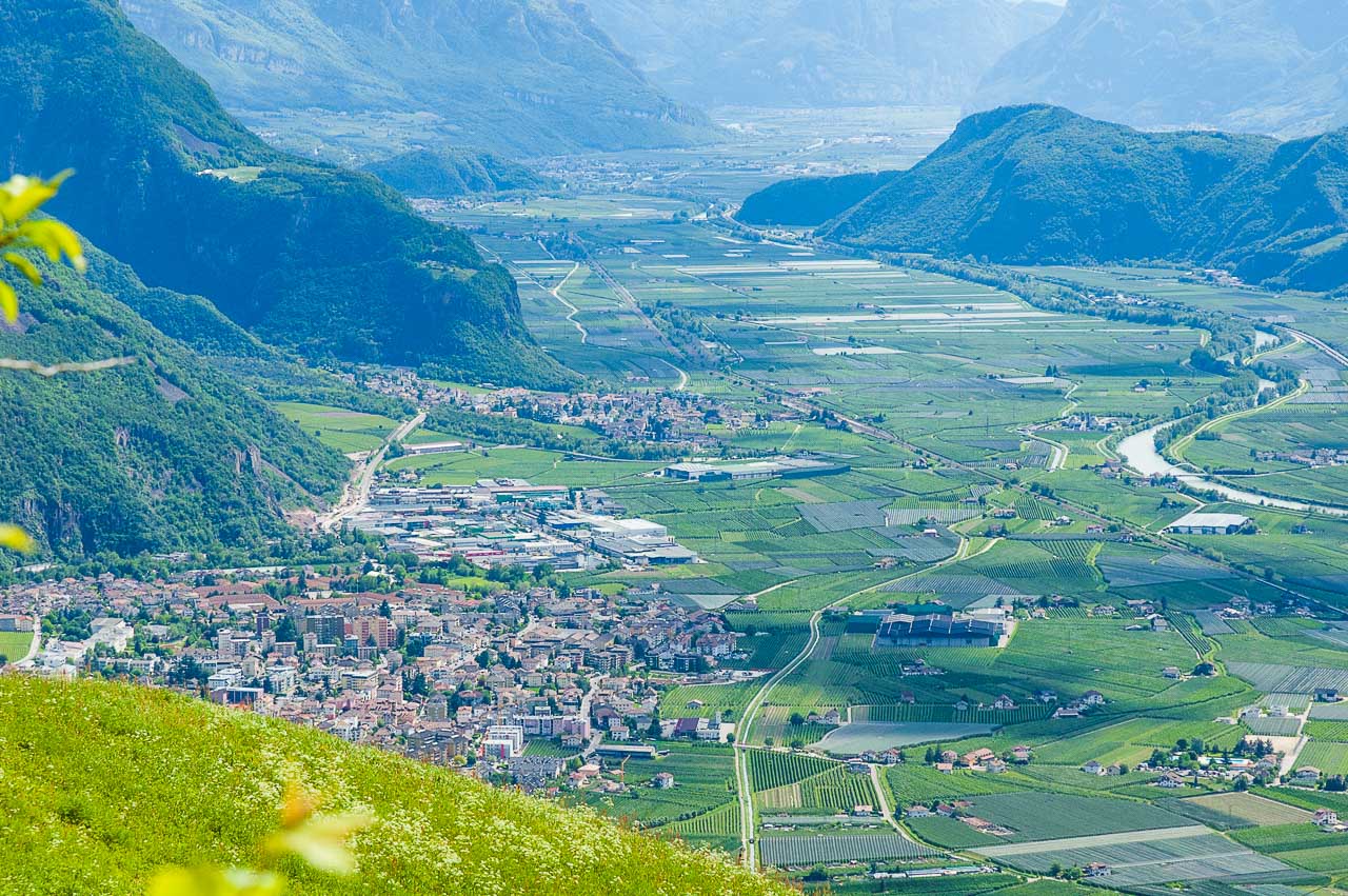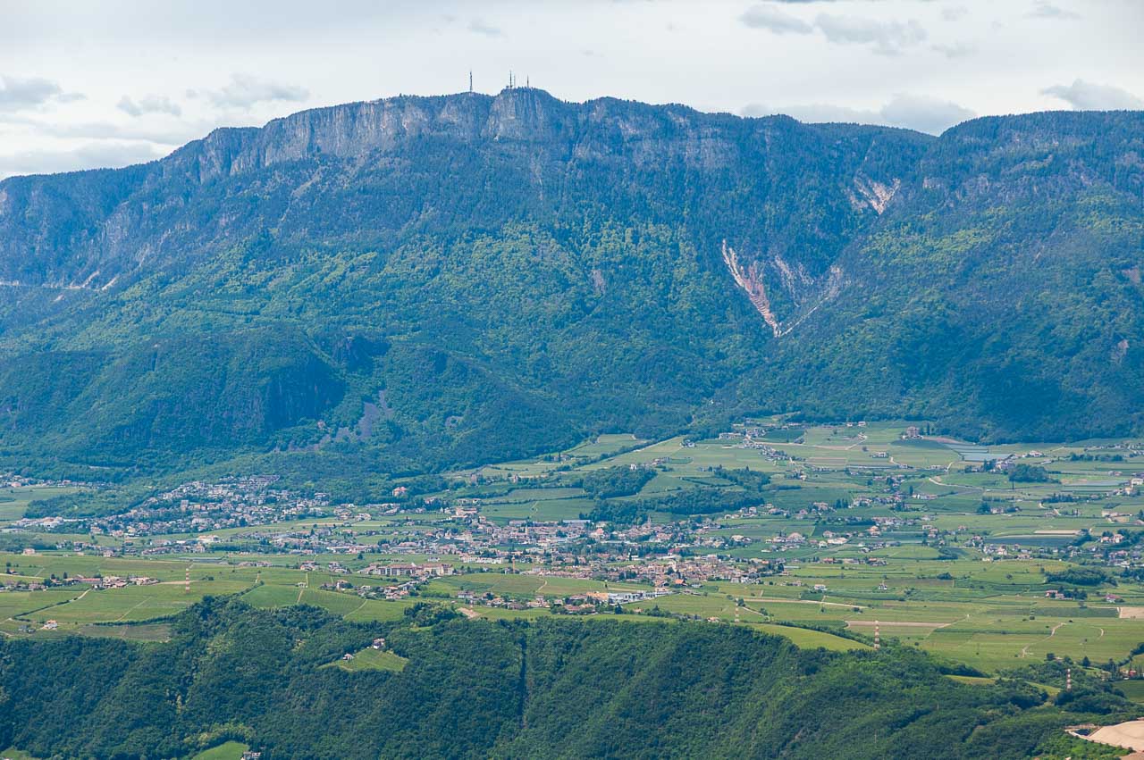 Es ist ein schöner Weg mit Aussicht auf das Bozner Unterland, das von Leifers bis nach Branzoll reicht. Die Etsch schlängelt sich durch das Tal und rechts flankieren der Mitterberg mit Sigmundskron und der Montiggl das Panorama.