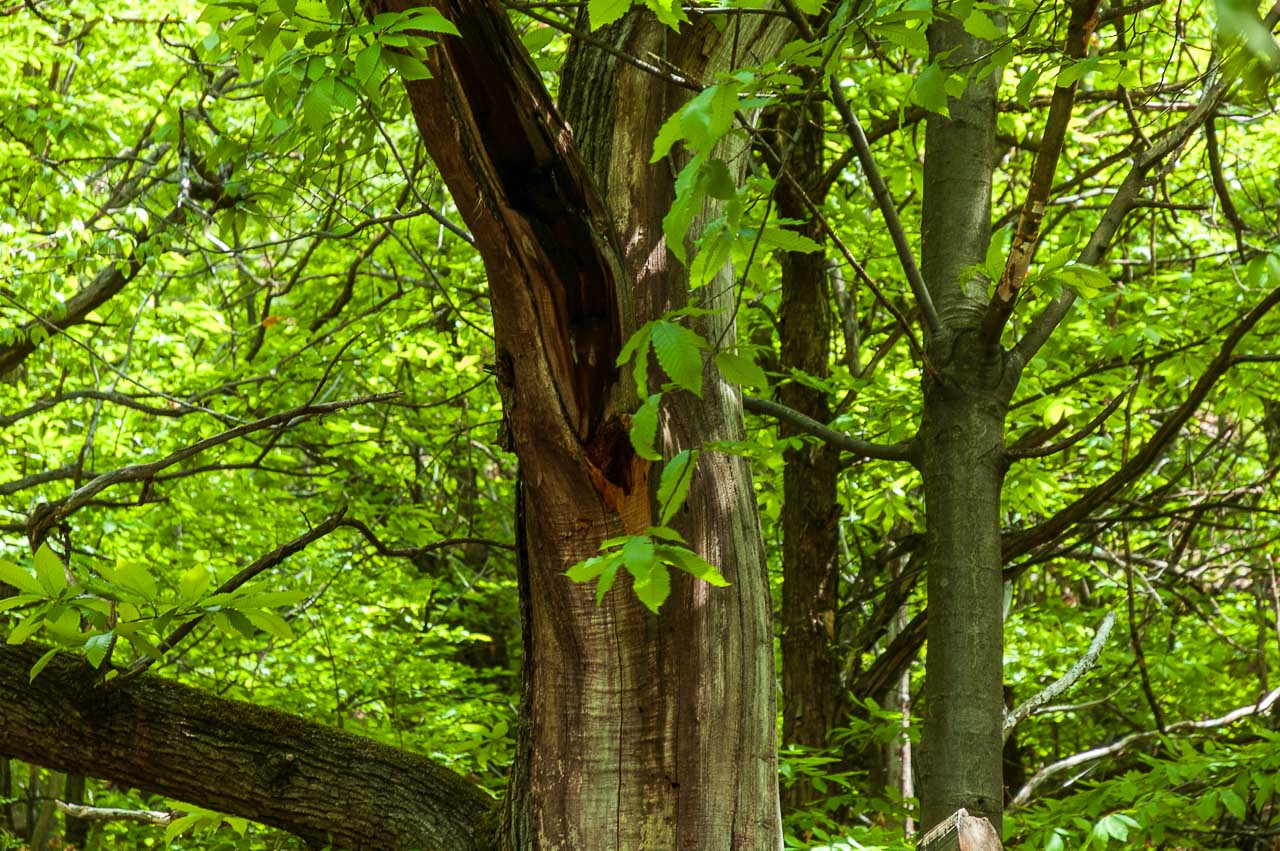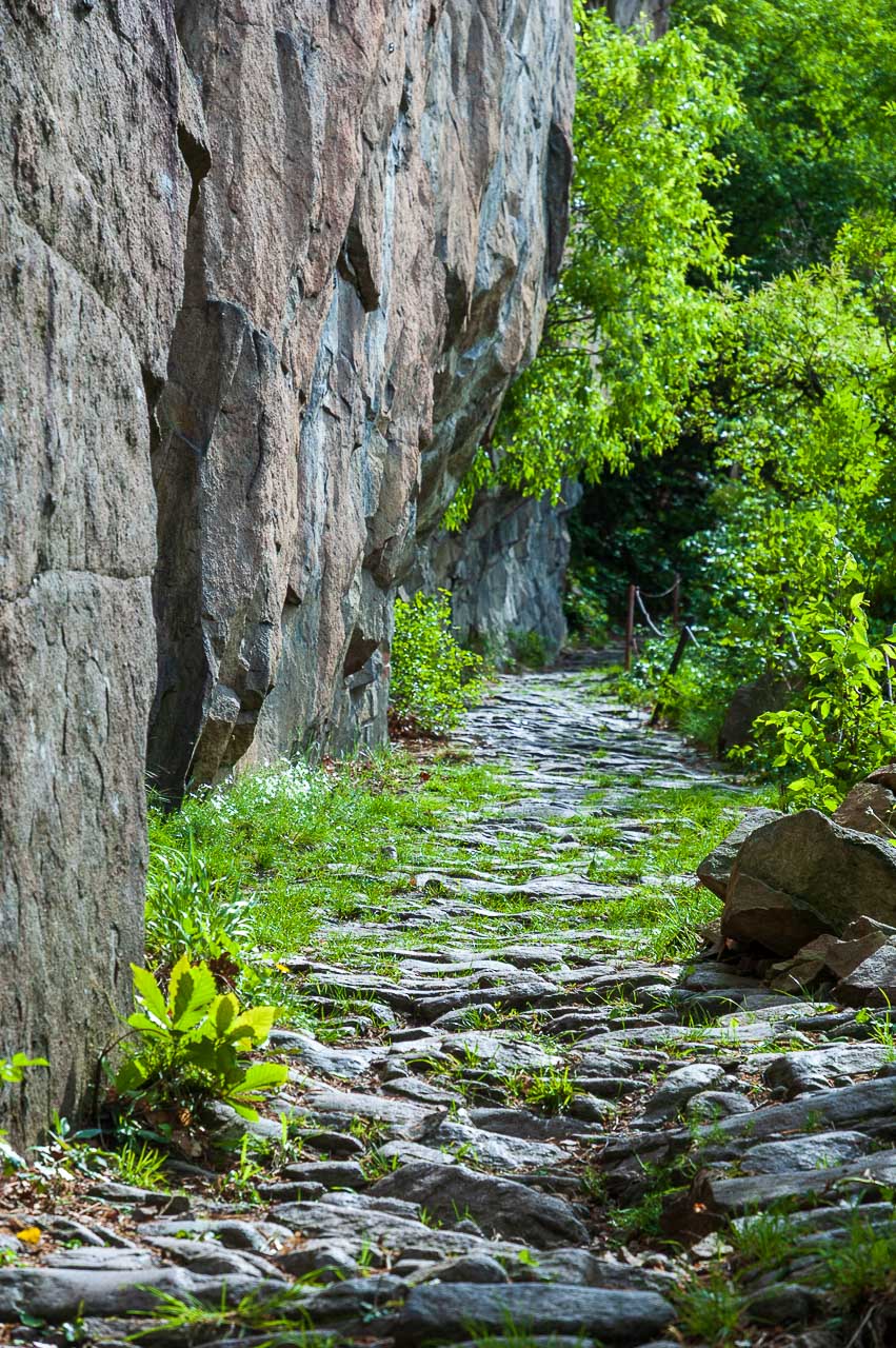 Die Sonne scheint nicht sehr stark, aber nach der 2-wöchigen Schlechtwetterperiode recht angenehm durch den Mischwald hindurch und lässt die frischen Buchenblätter hellgrün funkeln. Der Steig ist nun mit Steinen gepflastert. Scheinbar war das einst ein Weg für Fuhrwerke, was aber angesichts der Steigung schwer vorstellbar ist.