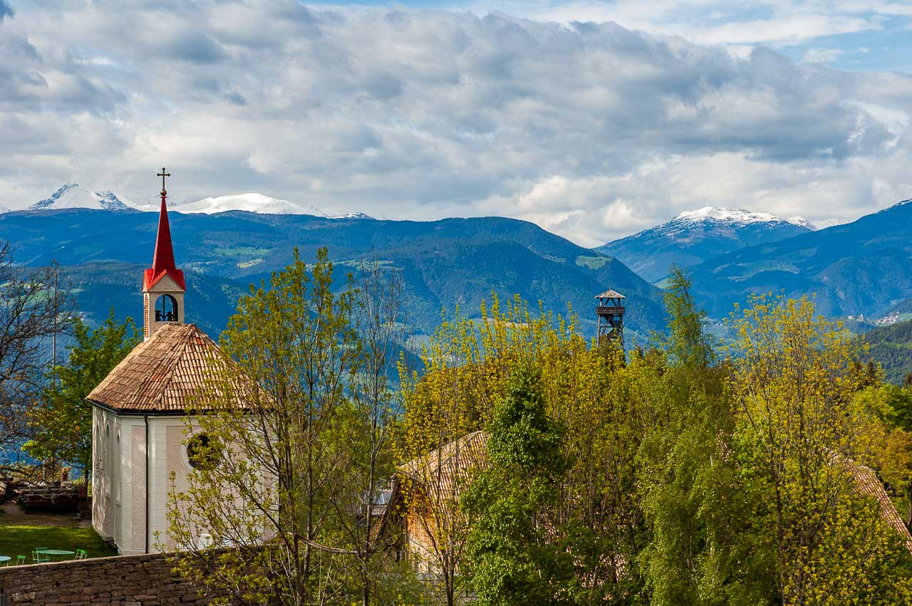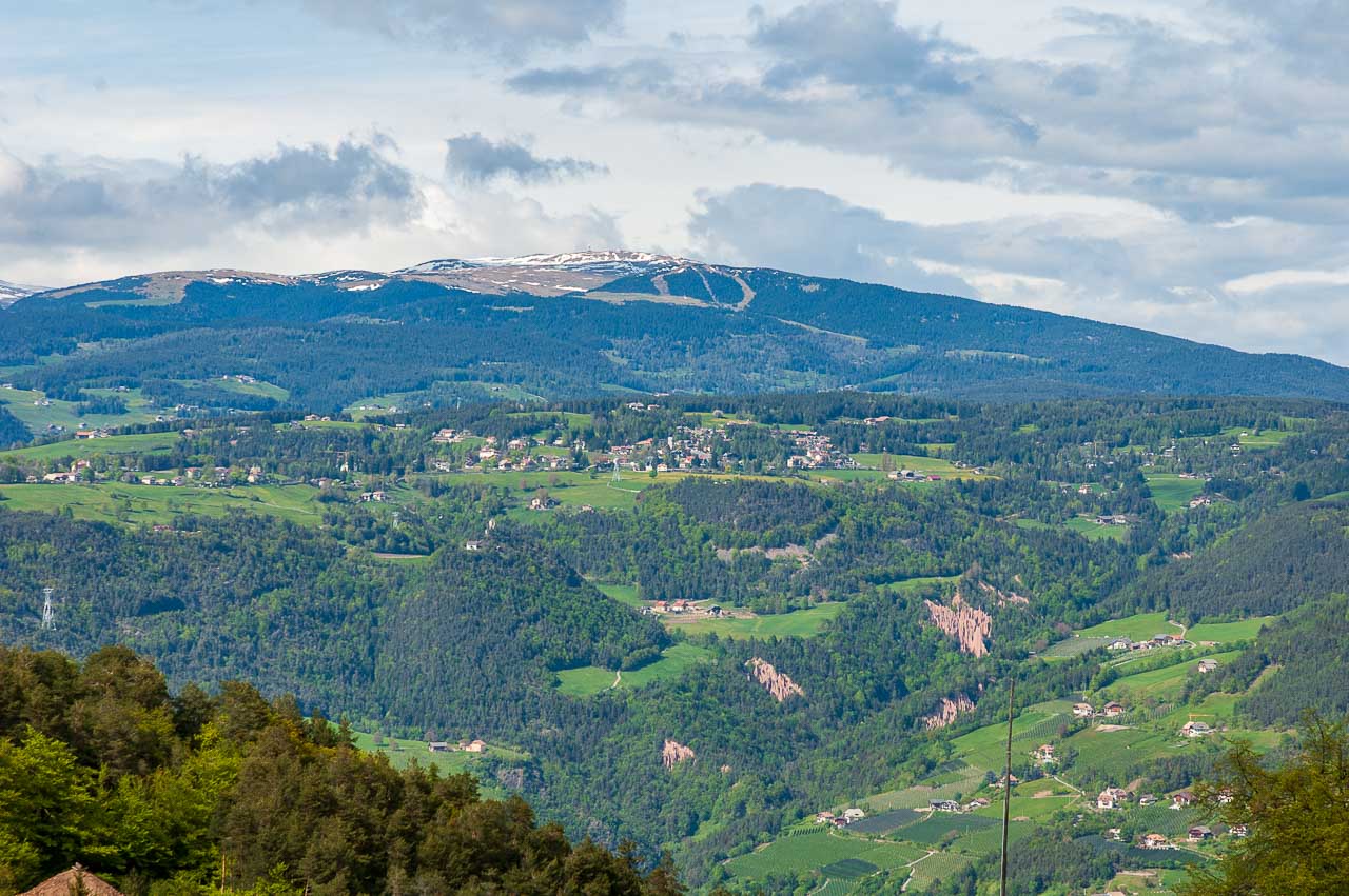 Etwas windig ist es hier in Kohlern oberhalb von Bozen bei circa 16°. Bekannt geworden ist Kohlern vor allem durch seine Kohlerer Bahn. Sie war die erste alpine Luftseilbahn für den Personentransport weltweit. Heraufgekommen sind wir nicht über Bozen, sondern über Leifers und Seit, denn eigentlich wollten wir heute von Seit aus starten. Doch das Bergdorf Seit ist zwar ein Kastanien Eldorado – ich weiß das, weil die Nena vom Gummererhof fürs Törggelen meistens die Kastanien von Seit bezog – aber mit Parkplätzen hat der kleine Ort scheinbar nicht viel am Hut.