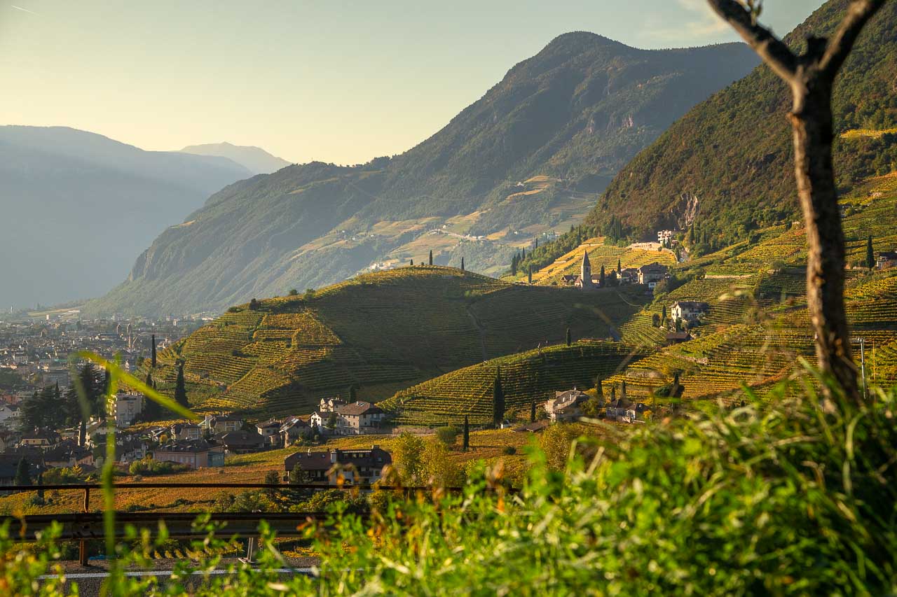 Ein altes Tor, Milchkannen aus Blech, ein goldgelber Nussbaum, unten im Tal Bozen, umrahmt von Weinbergen – was für ein Bild!