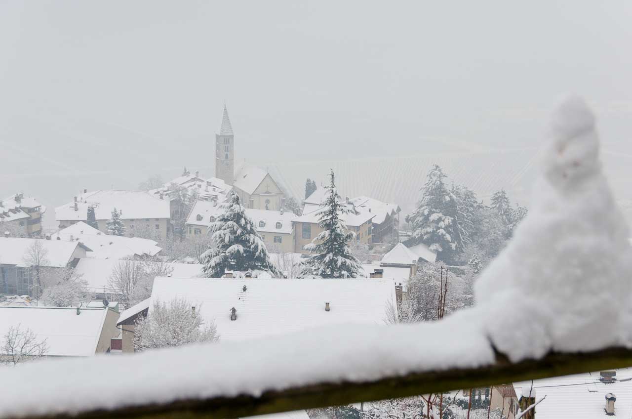 Die Mariahilfstraße führt steil nach Hofstatt hinauf. Zum Glück sind die Kurtatscher die besseren Schneeräumer als die Traminer, so vermissen wir unsere Wanderstöcke nur ein ganz klein wenig.